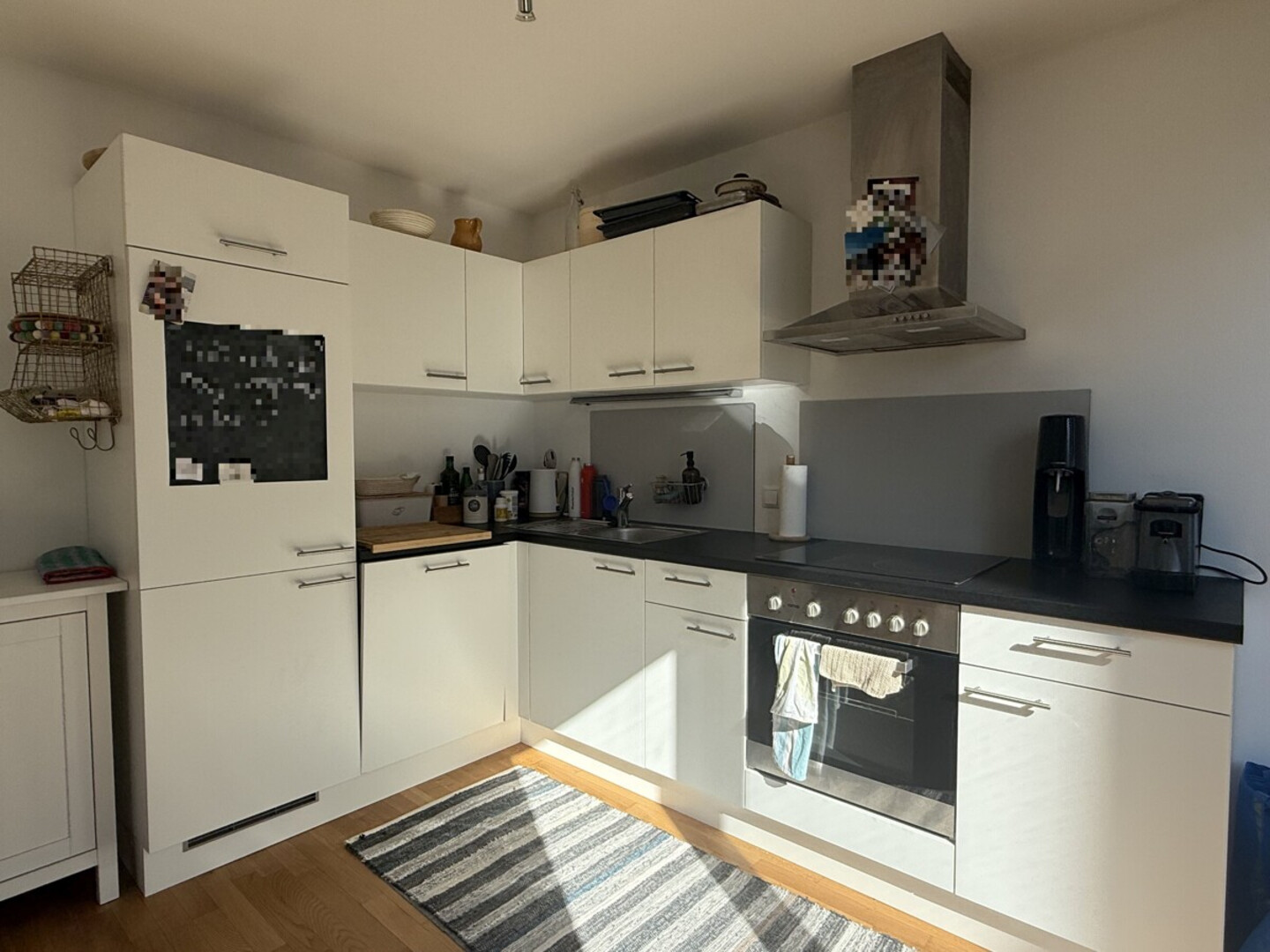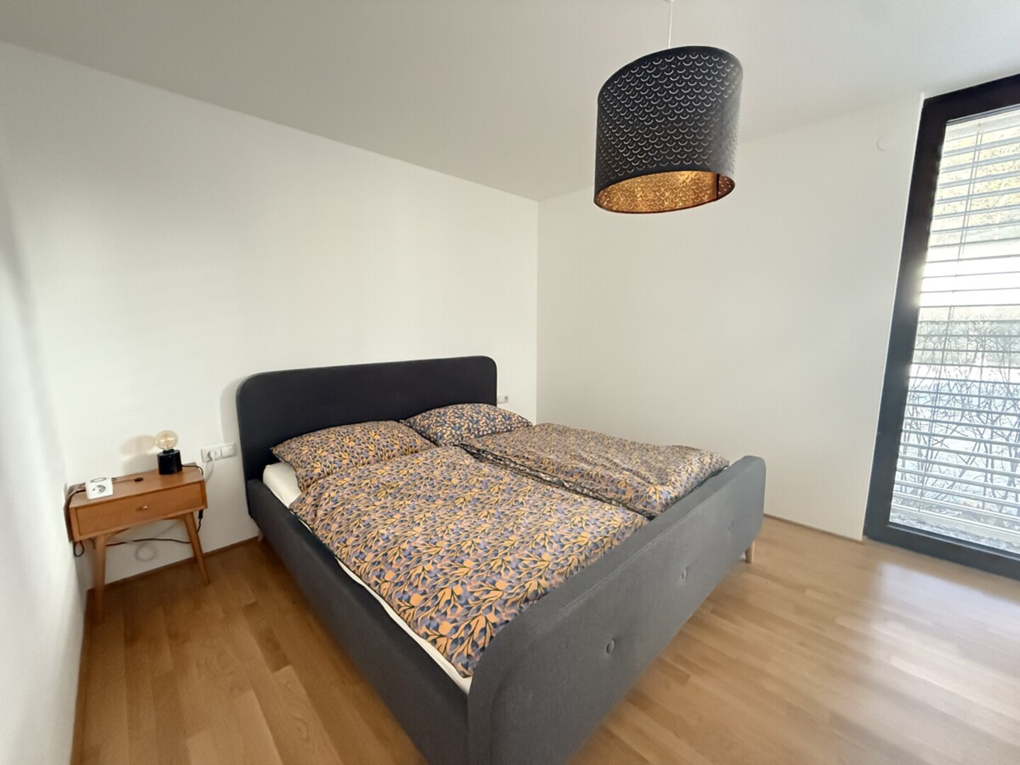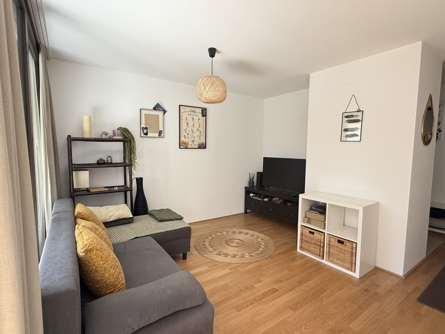 Die Wohnung verfügt über zwei Schlafzimmer, ein Badezimmer sowie einen offen und funktional gestalteten Wohnbereich mit hochwertiger Einbauküche. Fliesen- und Parkettböden sorgen für eine ansprechende Kombination aus Komfort und pflegeleichter Alltagstauglichkeit.