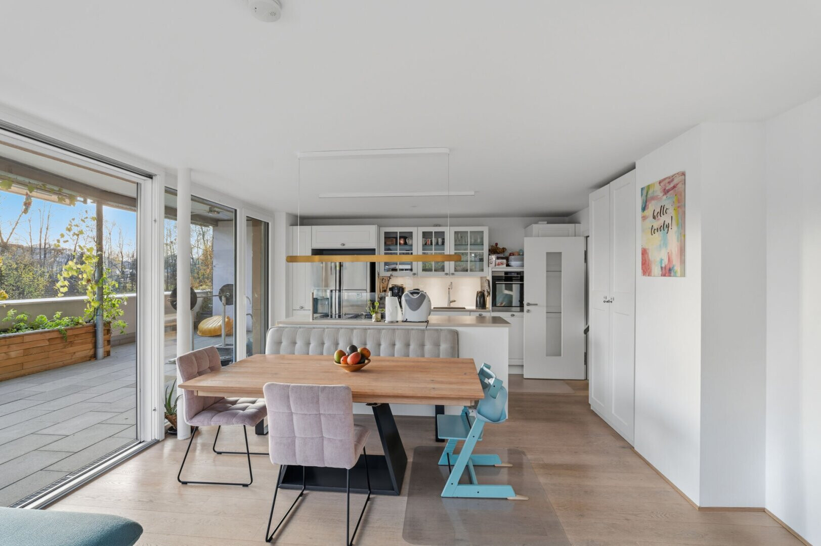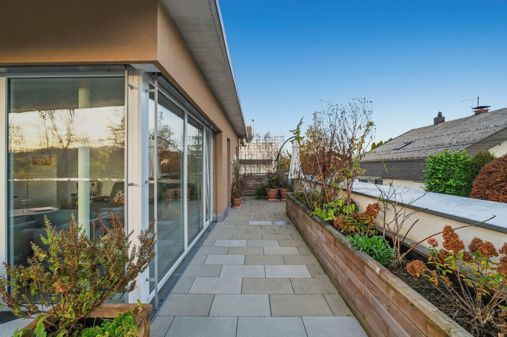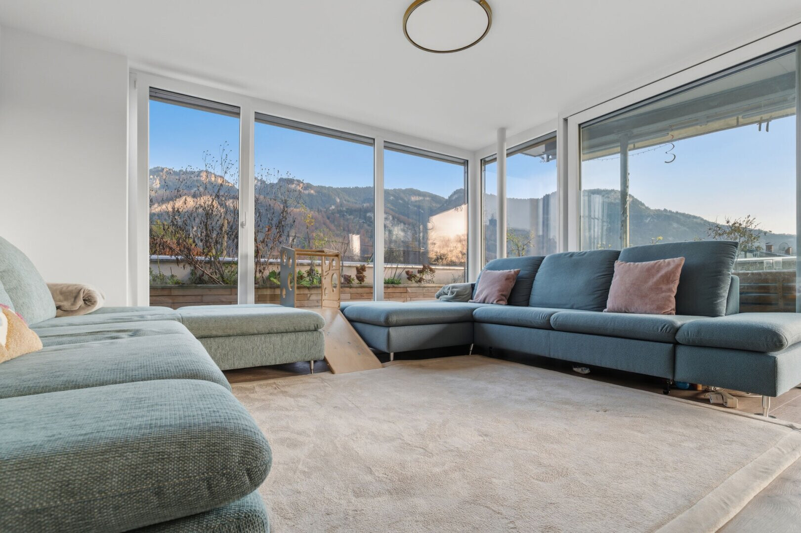 Mit über 100 m² Wohnfläche, aufgeteilt auf 4 großzügige Zimmer, bietet die Wohnung Platz für vielfältige Gestaltungswünsche. Von jedem Zimmer aus gelangt man auf die wunderschöne Terrasse. Diese ist über 90 m² groß und teilweise überdacht. Sie bietet einen unglaublichen Blick auf die umliegenden Berge und lädt zu jeder Jahreszeit zu gemütlichen Stunden ein.