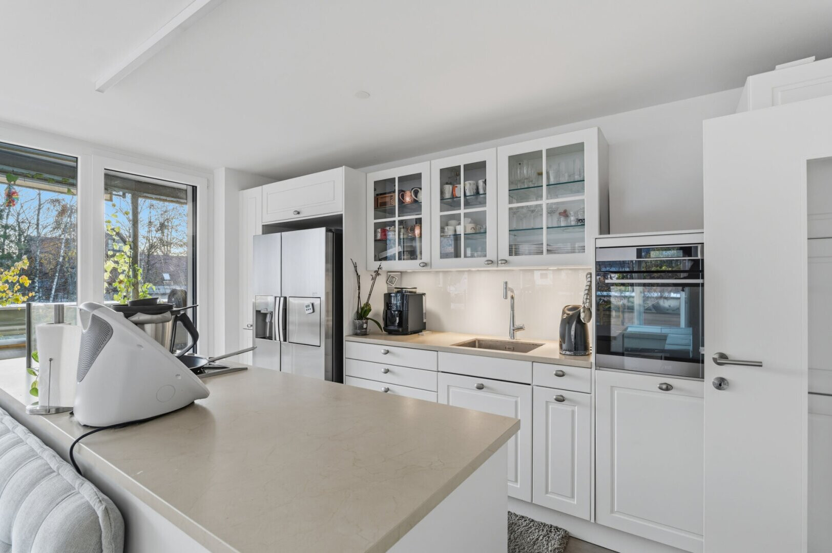 Die Wohnung besitzt einen lichtdurchfluteten, hellen Wohn-Essbereich. Raumhohe Fenster lassen hierbei viel Tageslicht in die Wohnung. Es wurde auf ein spezielles Lichtkonzept geachtet – sowohl der Garderobenbereich als auch das Bad verfügen zusätzlich über eine Lichtkuppel.