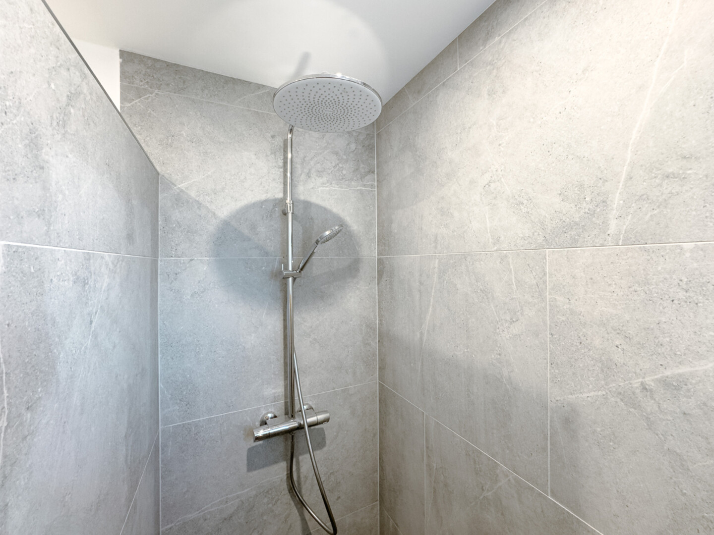 •Modernes Badezimmer mit begehbarer Dusche und Doppelwaschbecken