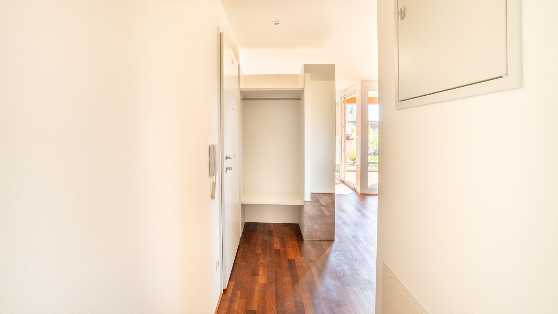 Beim Betreten gelangen Sie in den Eingangsbereich, von dem aus alle Räume zentral erschlossen sind. Das Herzstück der Wohnung bildet der großzügige Wohn-, Koch- und Essbereich. Dieser sorgt durch große Fenster und Zugang zur Loggia für ein lichtdurchflutetes Raumgefühl. Die angeschlossene Loggia erweitert den Wohnraum nach draußen und lädt zum Verweilen ein.