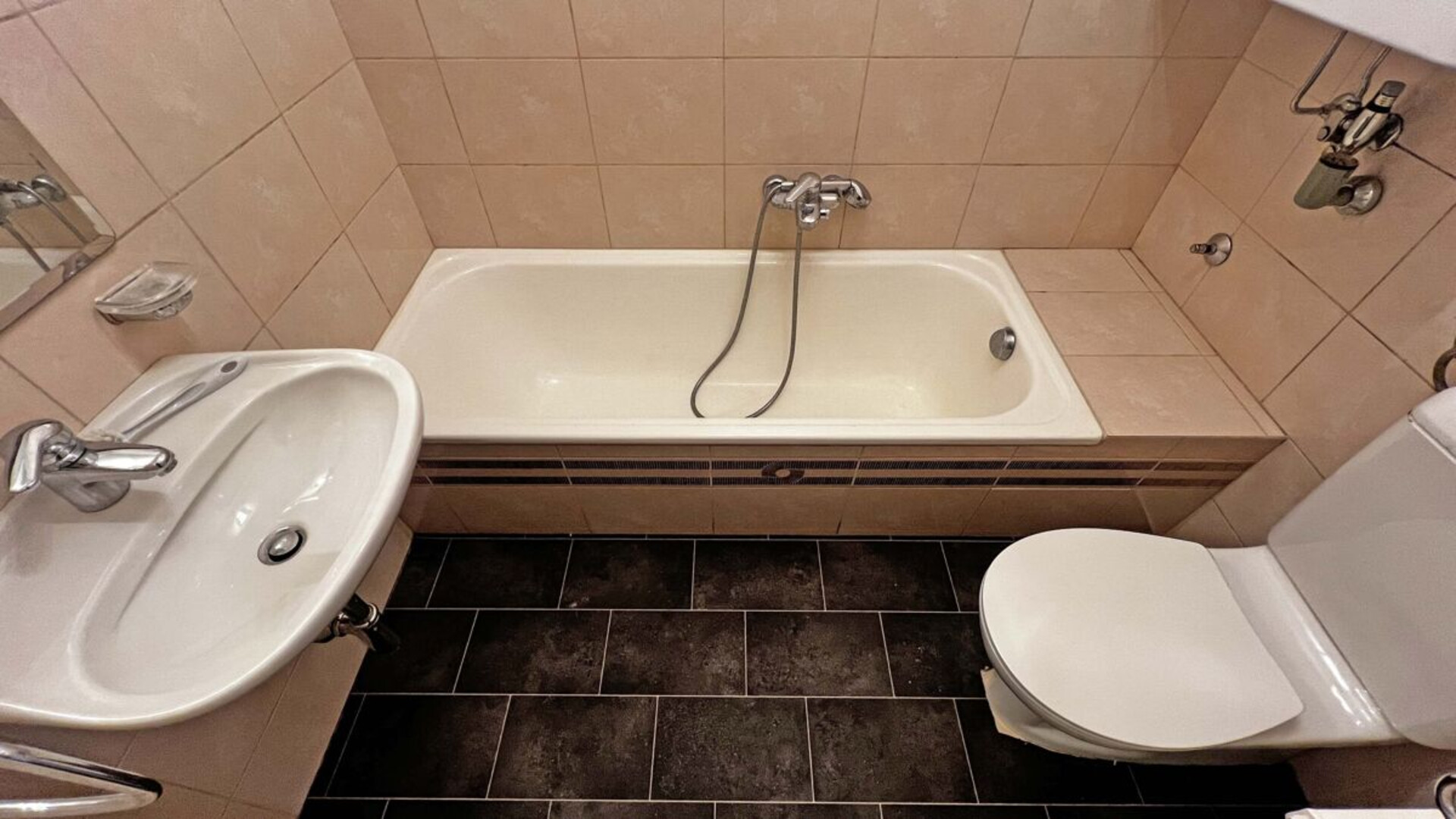 Dieses praktische Apartment liegt in einem Mehrfamilienhaus aus dem Jahre 1964. Es ist ideal aufgeteilt und verfügt über ein Schlafzimmer, einen Wohnraum, dazwischen befindet sich eine kleine Einbauküche sowie ein Bad mit Badewanne. Die Wohnräume verfügen über Parkettboden, große Fenster und jeweils eine Tür zum Balkon, welcher mit schicken grauen Fliessen belegt ist. In der Decke sind bereits Vorhangschienen montiert. Die Wohnung ist über eine Treppe oder mit dem Lift erreichbar. Zur Wohnung gehört ein Kellerraum welcher im Erdgeschoss platziert ist. Eine Münzwaschmaschine und zwei Trockenräume sind ebenfalls vorhanden. Vor dem Haus befinden sich Parkplätze, welche von den Hausbewohnern gemeinsam genutzt werden.