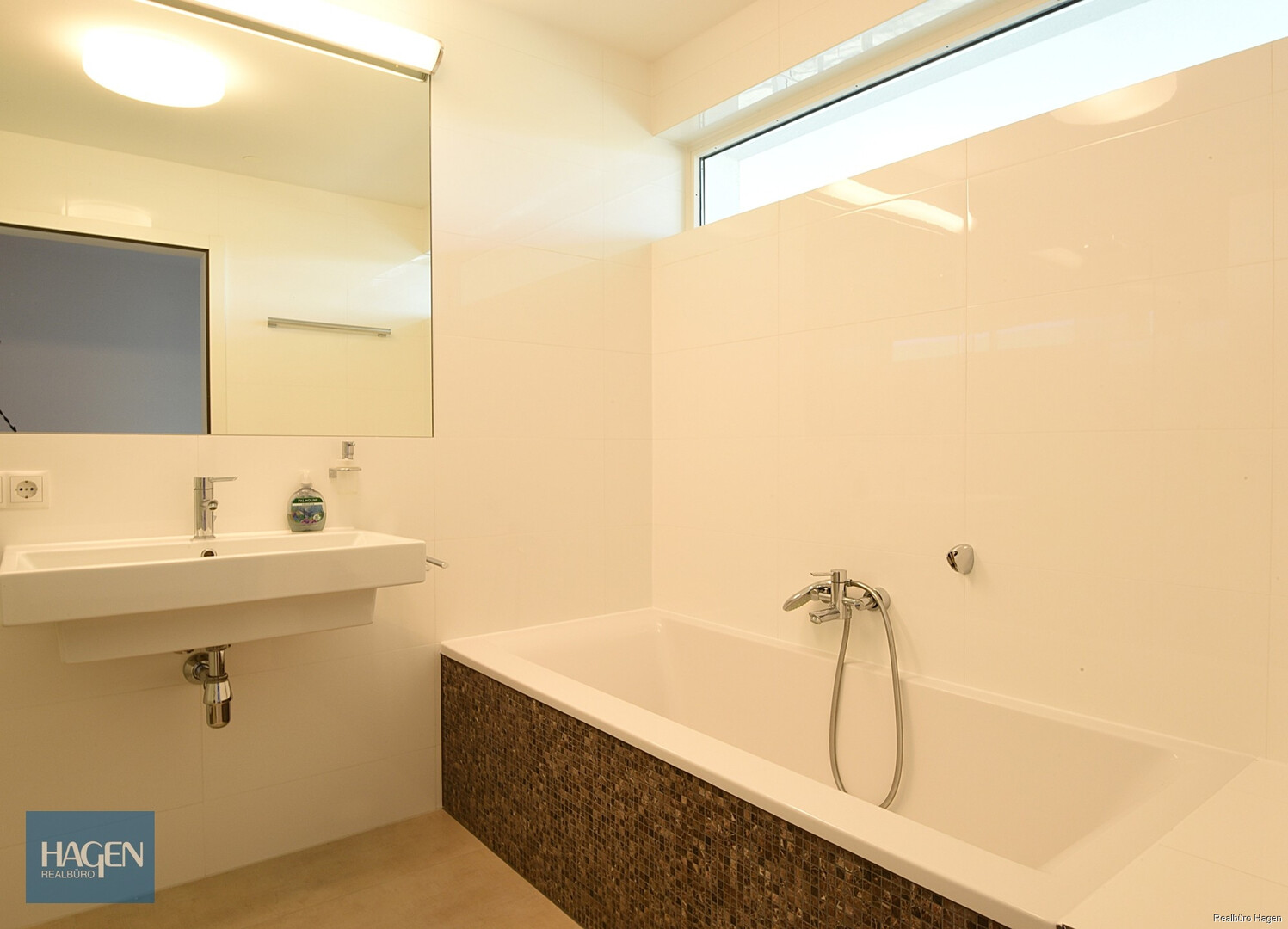 Das stilvolle Tageslichtbad ist mit einer Dusche sowie einer Badewanne ausgestattet und bietet sowohl Platz für schnelle Erfrischungen als auch für entspannende Momente. Ein praktischer Waschmaschinenanschluss im Badezimmer sorgt für zusätzlichen Komfort.
