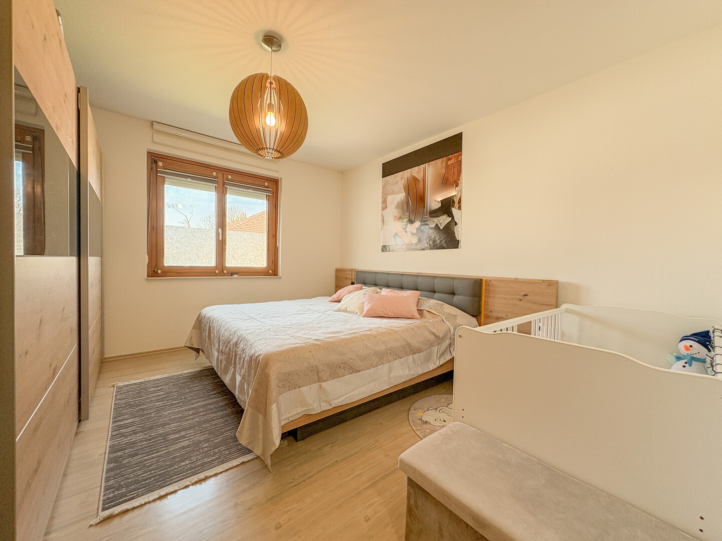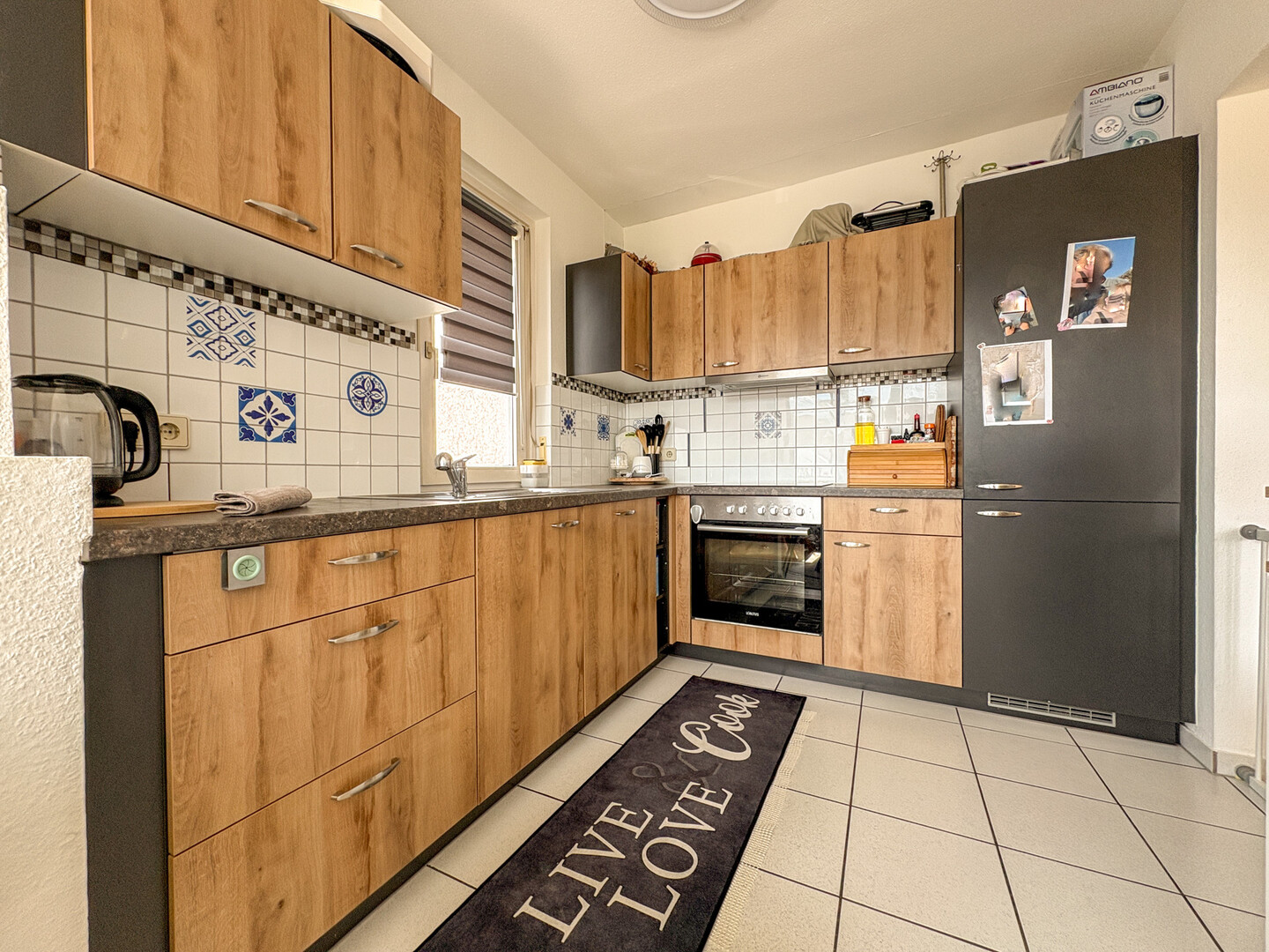 Der großzügige Eingangsbereich führt in zwei helle Schlafzimmer und einen sonnendurchfluteten Wohnbereich – ideal zum Entspannen. Die Küche wurde 2022 modernisiert und durch den Ausbau der Loggia vergrößert.