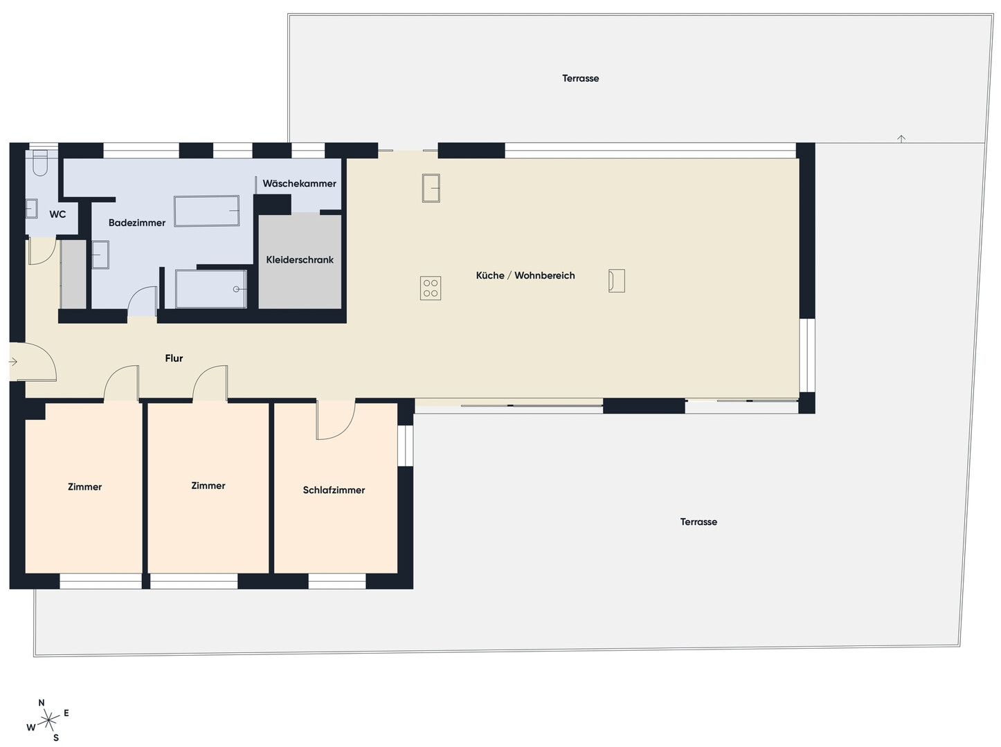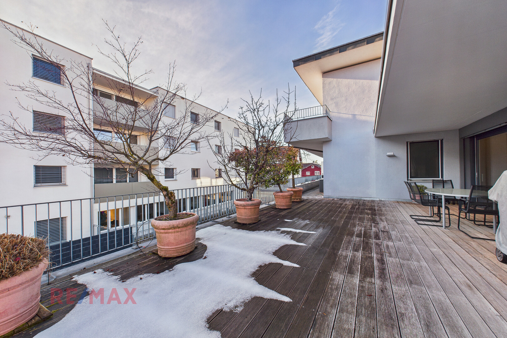 Große Fensterflächen sorgen den ganzen Tag über für viel Tageslicht und verbinden den Innenraum harmonisch mit dem Außenbereich. Ein echtes Highlight ist die umlaufende Terrasse, die diese Wohnung zu etwas Besonderem macht. Sie begleitet das Zuhause wie ein grüner Rahmen, ist von mehreren Räumen aus zugänglich und bietet zu jeder Tageszeit einen passenden Platz. Ein idealer Ort zum Abschalten, Genießen und Durchatmen.