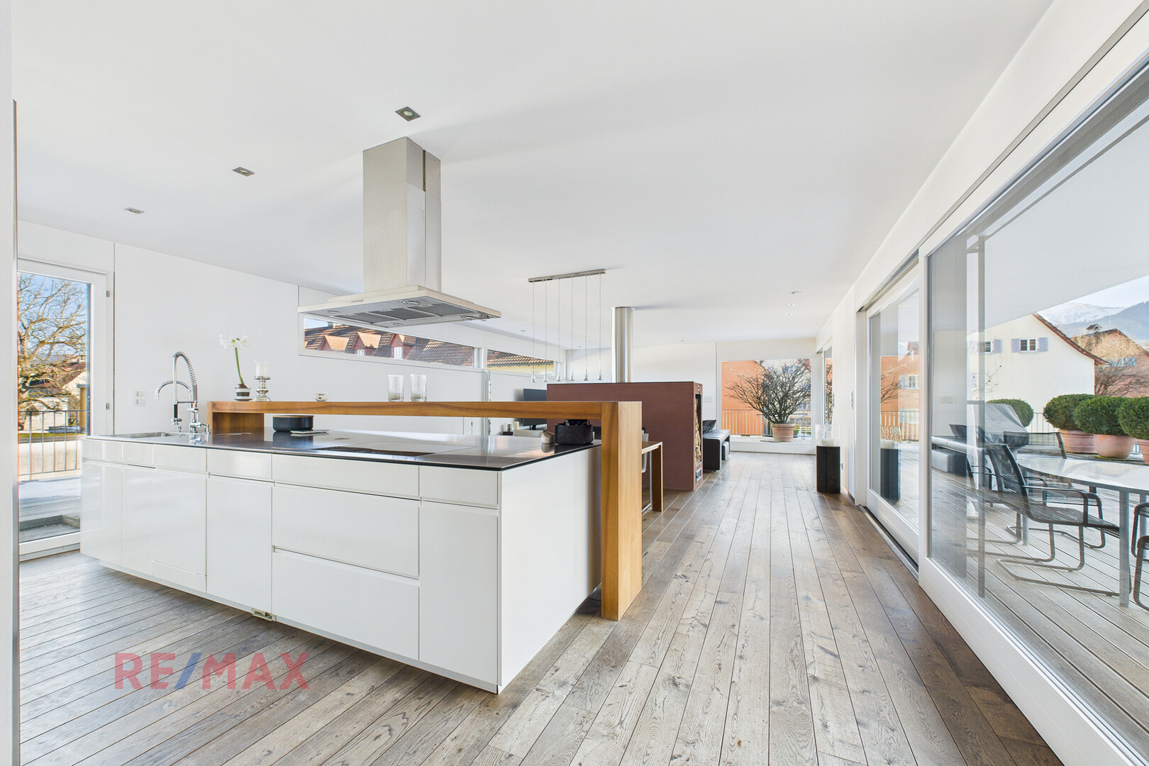 + Offener Wohn- und Essbereich mit umlaufender Terrasse