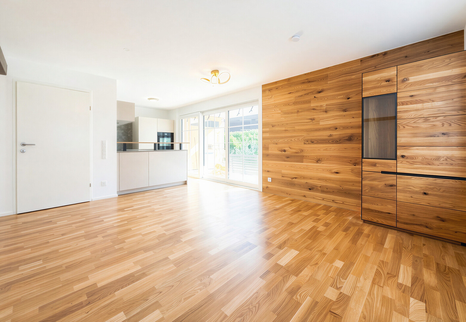 großzügiger Wohn-Koch-Essbereich mit viel natürlichem Licht