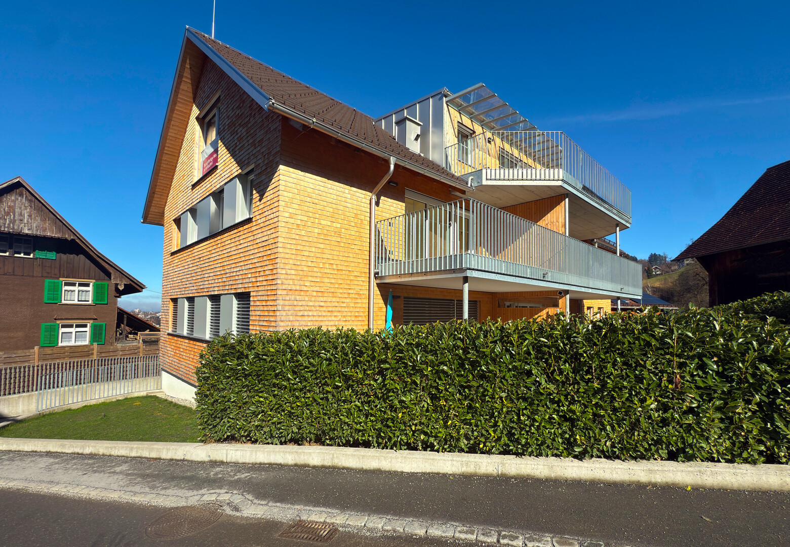 traditionelle Architektur mit Schindelfassade und Satteldach