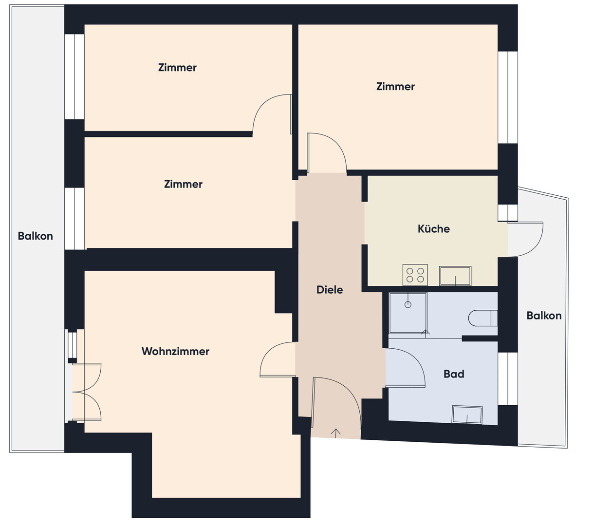 Insgesamt verfügt die Wohnung über zwei Balkone, die zusätzlichen Wohnkomfort bieten.