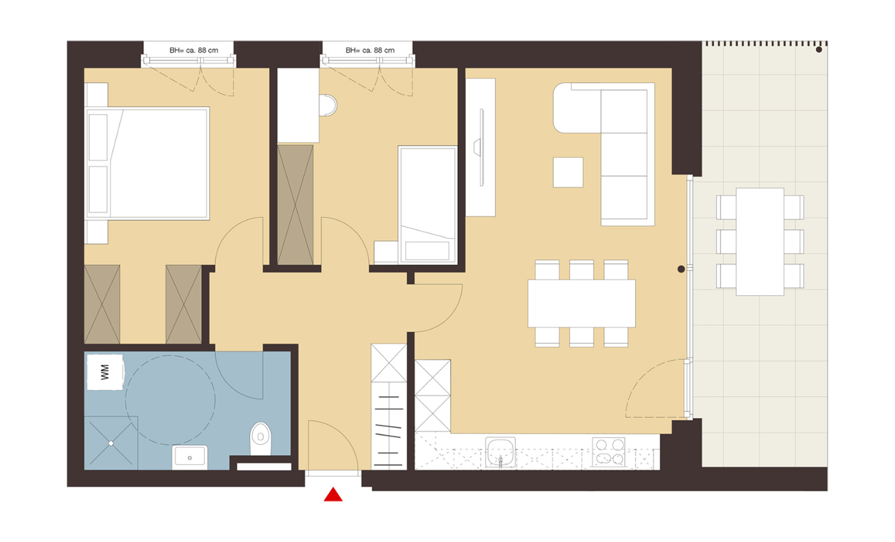 Ein Paradies für Gartenliebhaber: Diese Wohnung im Erdgeschoss verfügt über eine großzügige Terrasse mit angrenzendem Privatgarten. Hier lässt sich die Natur in vollen Zügen genießen – sei es beim Frühstück im Freien oder beim Entspannen nach einem langen Tag.