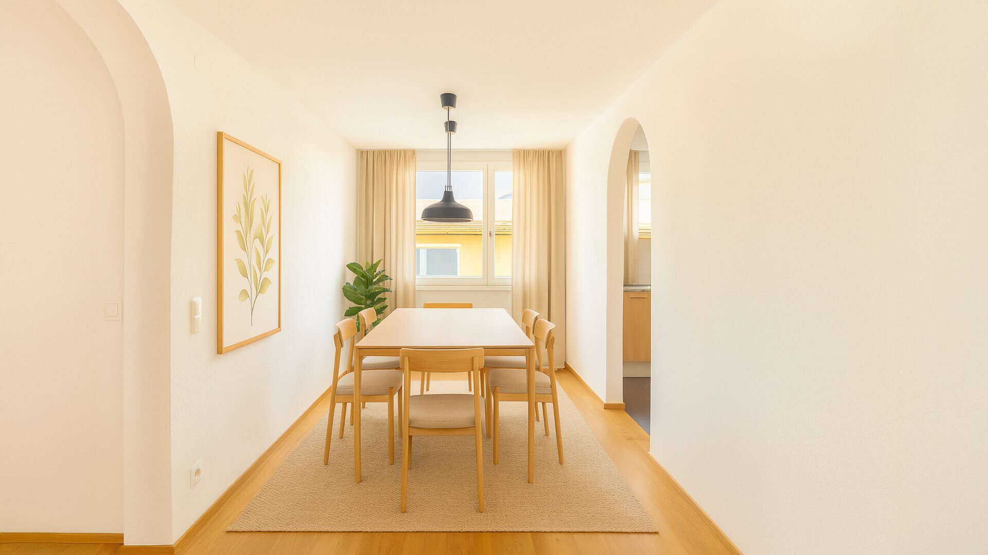 Architektonische Details wie sanfte Rundbögen verleihen der Wohnung eine wohnliche und ansprechende Atmosphäre. Die Räume sind offen gestaltet und vermitteln ein großzügiges Raumgefühl. Die Wohnung ist teilweise möbliert und wurde liebevoll in Schuss gehalten.