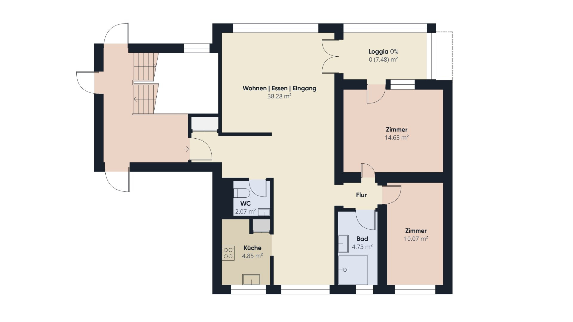 Zur besseren Veranschaulichung wurde ein Teil der Aufnahmen digital bearbeitet bzw. virtuell eingerichtet. Die Fotos dienen der visuellen Orientierung, die tatsächliche Ausstattung und Möblierung kann abweichen.