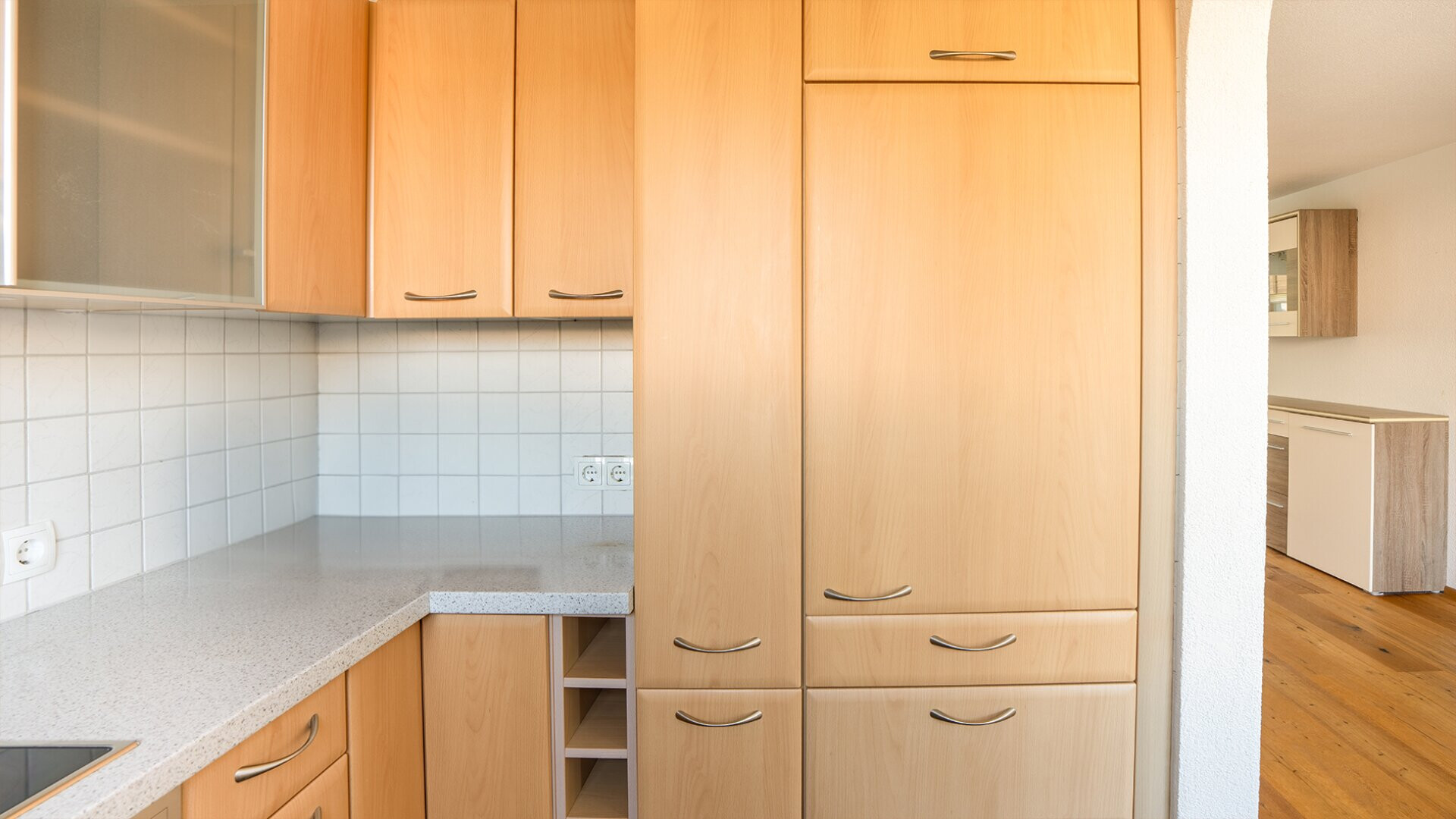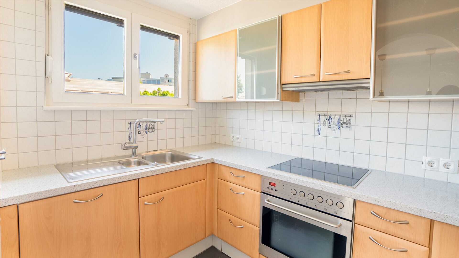 Die Wohnung liegt im 1. Obergeschoss einer gepflegten Wohnanlage. Bereits beim Betreten fällt der großzügige Eingangsbereich auf, der durch einen praktischen Einbauschrank optimalen Stauraum bietet. Der offen gestaltete Wohn- und Essbereich ist besonders weitläufig und lichtdurchflutet. Die Küche ist kompakt, funktional und charmant, bei Bedarf lässt sie sich vom Wohnraum komplett abtrennen.