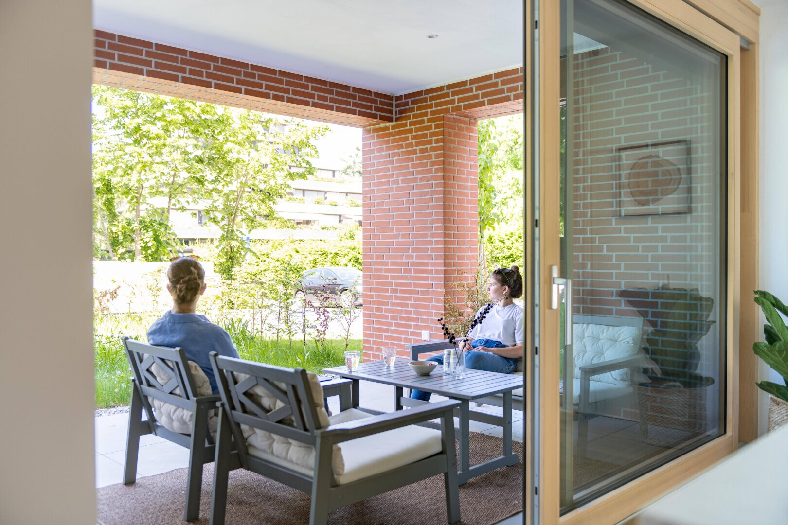 Auf 81,69 m² Wohnfläche erwartet Sie ein durchdachtes Raumkonzept, das Wohngenuss auf höchstem Niveau verspricht. Der großzügige Wohn-/Essbereich mit seiner offenen Gestaltung lädt zum Entspannen, Genießen und Verweilen ein. Von hier aus gelangen Sie direkt auf die traumhafte überdachte Terrasse sowie in Ihren privaten Garten – ein echtes Paradies für Naturliebhaber, Genießer und alle, die gerne im Freien entspannen oder Gäste empfangen.