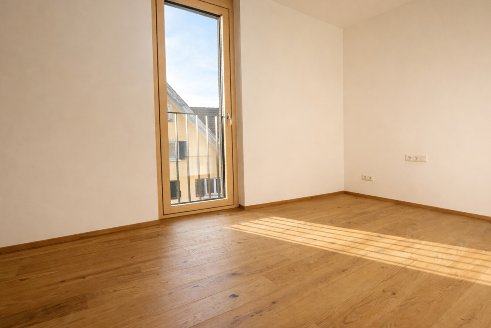 Vom Wohnbereich aus gelangen Sie auf die schöne nach Süden ausgerichtete Loggia. Diese schafft einen privaten Rückzugsort im Freien, mitten in der Stadt und mit Blick über die Dächer von Dornbirn.
