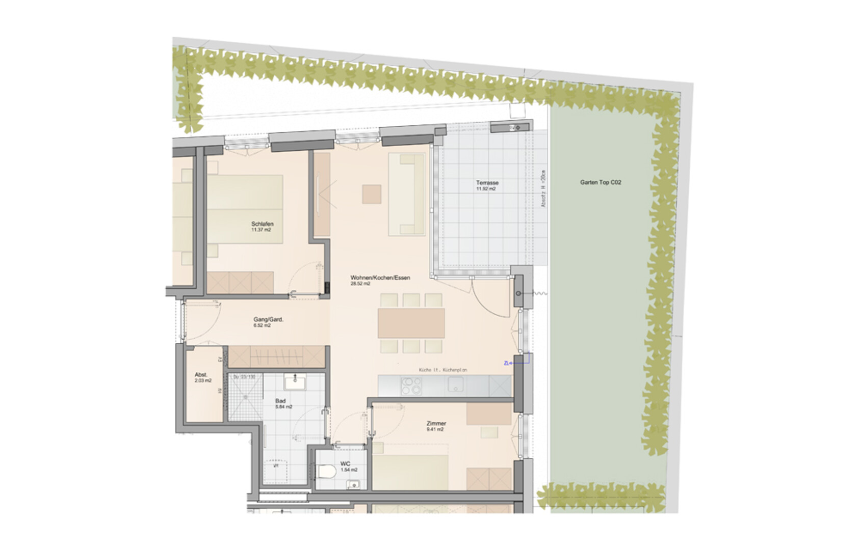 Im Bau 3-Zimmer Gartenwohnung in Ruhelage (Top C02)
