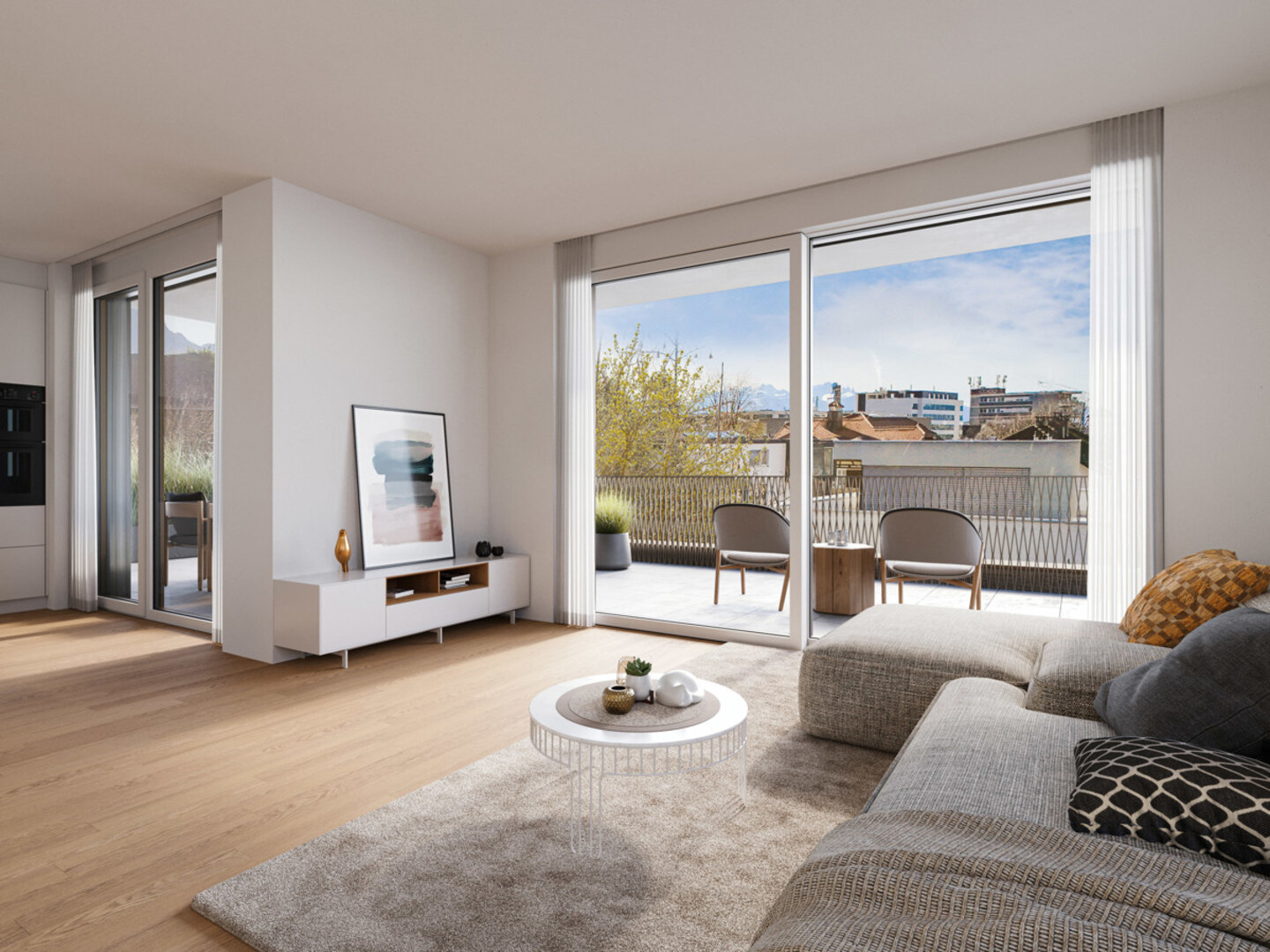 Dank Massivbauweise, optimierten Schallschutzmaßnahmen und dreifach verglasten Fenstern wohnen Sie besonders ruhig. Die Fußbodenheizung sorgt vor allem an kühleren Tagen für wohlige Wärme und lässt sich pro Raum individuell einstellen. Der hochwertige Parkettboden, moderne Fliesen im Badezimmer/WC sowie eine Duschverglasung in Echtglas, eine Schiebetüre vom Wohnbereich zur Terrasse und ein "Mehr" an Schaltern und Steckdosen sind Teil unserer Ausstattung.