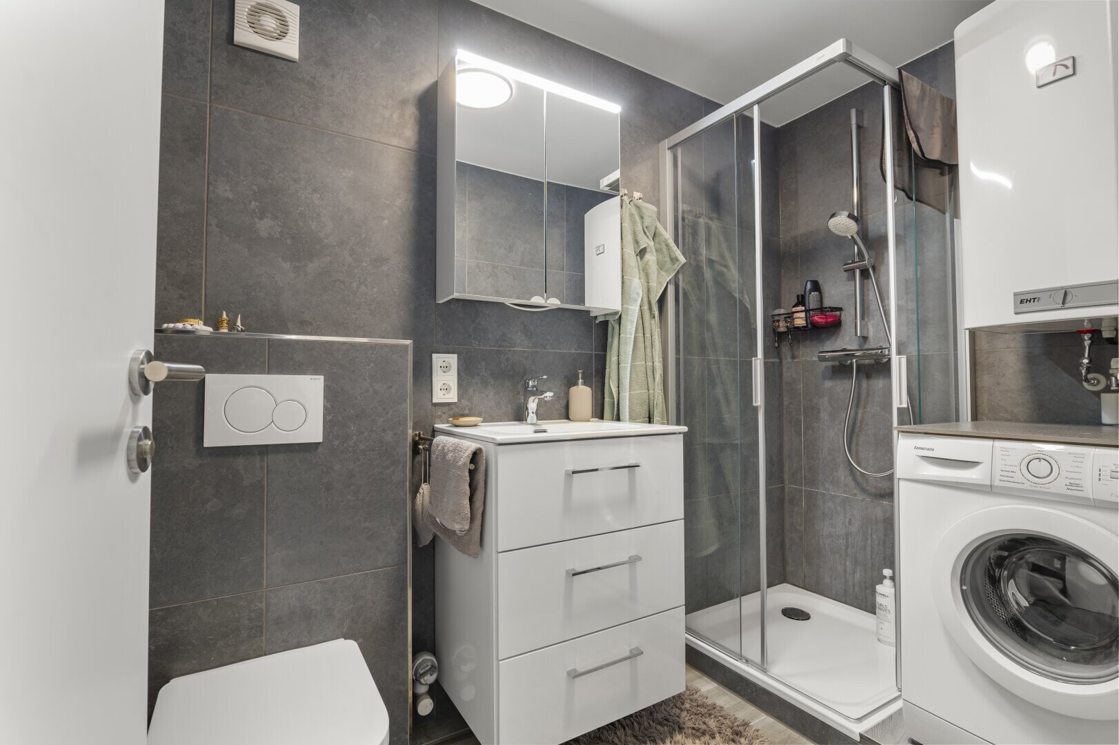 Das Badezimmer ist mit einer Dusche sowie einem mit WC ausgestattet. In der 4. Etage befindet sich eine Dachterrasse und ein kleiner Balkon der gemeinschaftlich genutzt werden kann.