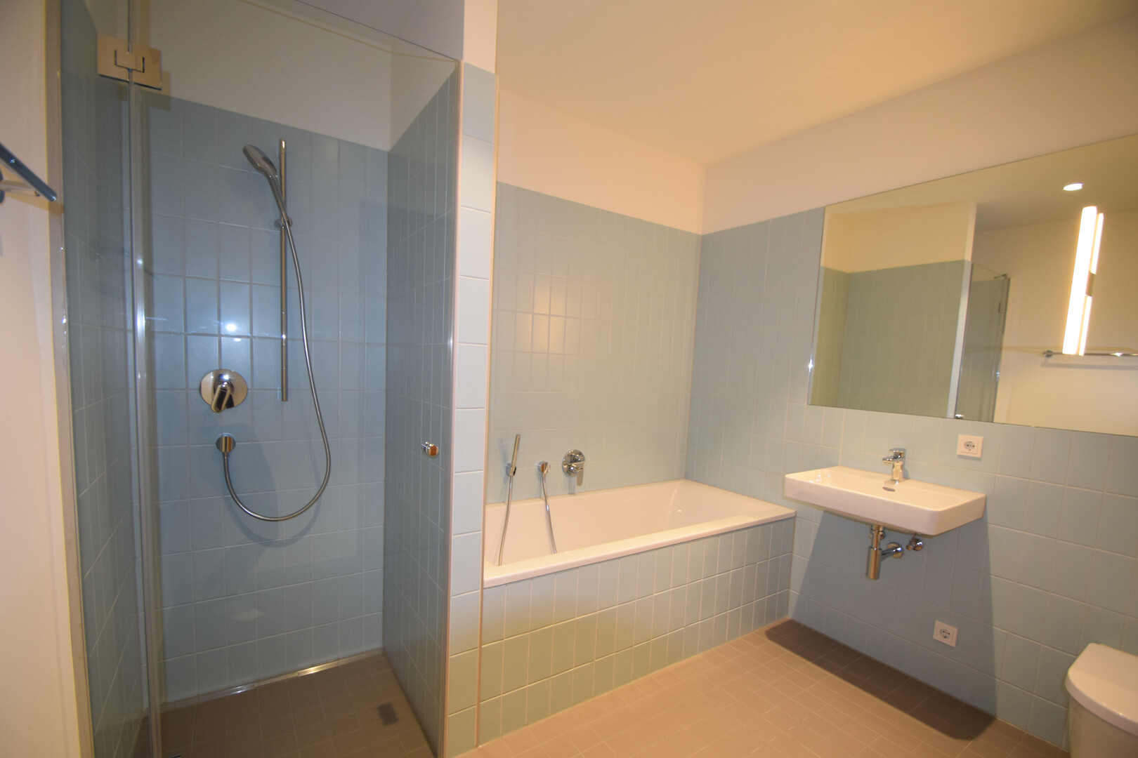 In den Wohnräumen wurde Echtholzparkett in Eiche verlegt, während die Nassräume sowohl an den Wänden als auch am Boden gefliest sind.