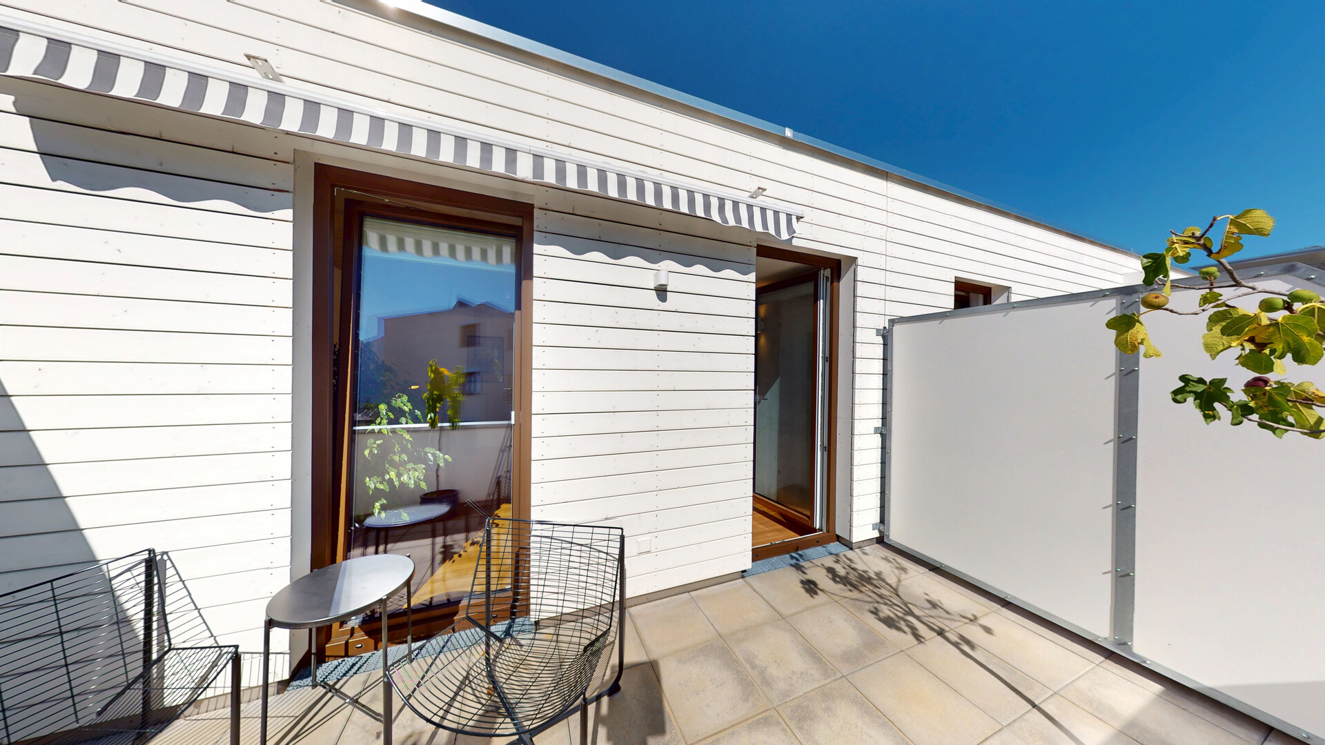 Ein besonderes Highlight ist die sonnige Dachterrasse. Sie schafft einen zusätzlichen privaten Außenraum mit urbanem Charakter.
