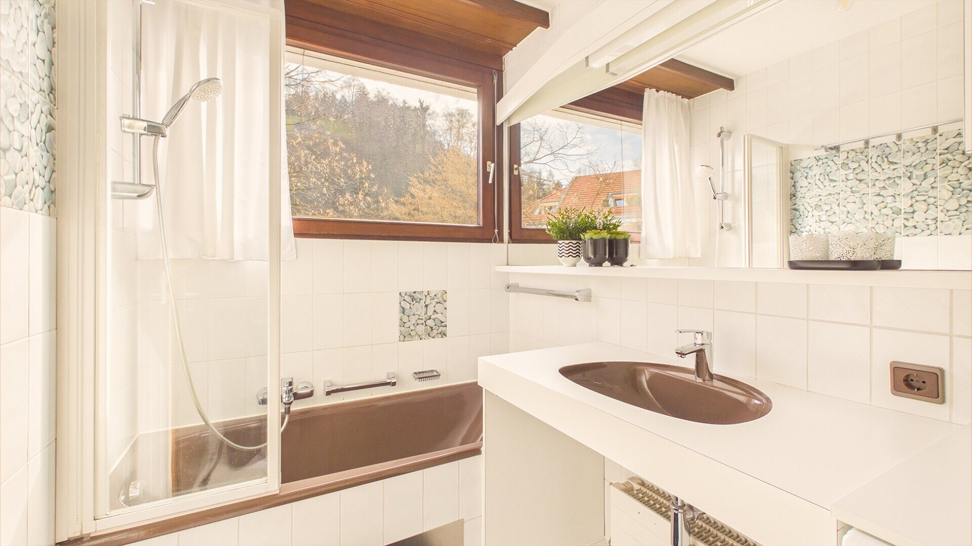 Der offene Wohn-Essbereich bildet das Zentrum der Wohnung und bietet direkten Zugang zur großzügigen Terrasse. Von hier aus eröffnet sich ein schöner Blick auf den Karren sowie ins Grüne. Durch die südliche Ausrichtung genießt man nahezu den ganzen Tag über Sonne. Zwei vorhandene Markisen sorgen bei Bedarf für angenehmen Schatten.