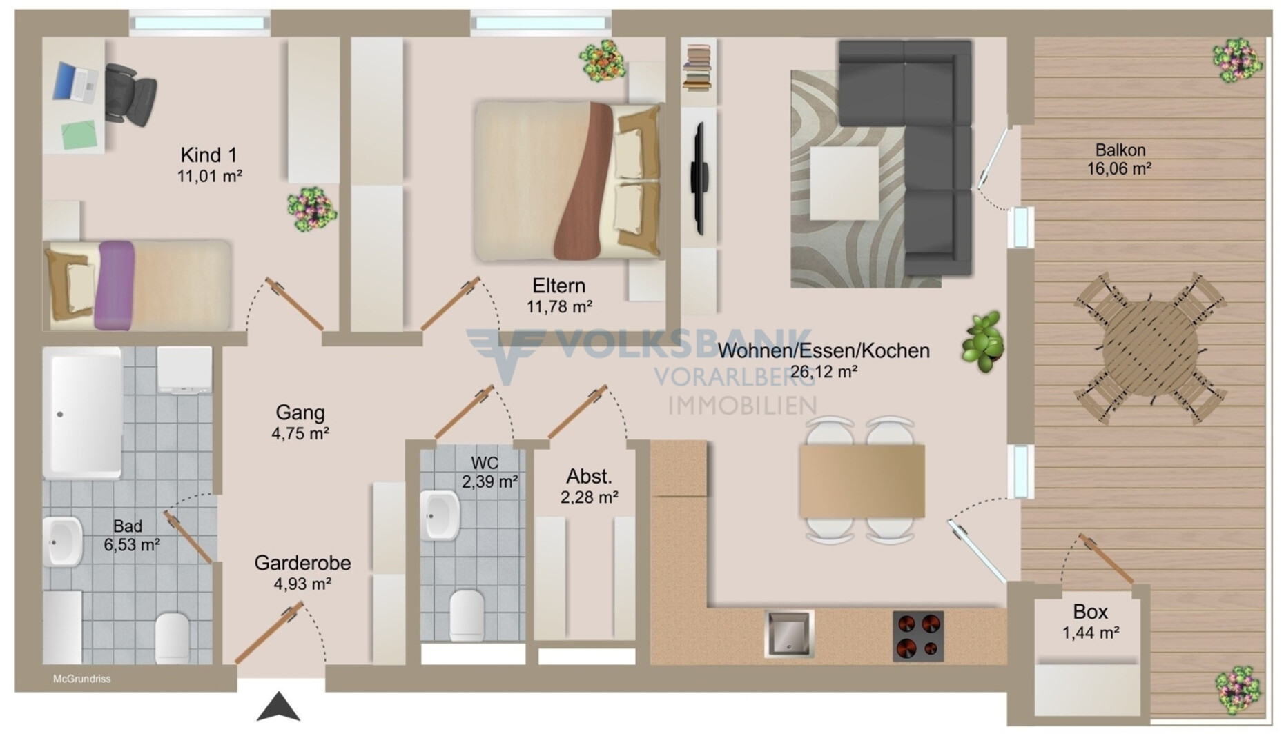 Wir weisen Sie darauf hin, dass der angeführte Grundriss als Symbolbild gilt und dieser sowie die darin enthaltenen Flächenangaben von den tatsächlichen Gegebenheiten abweichen können.