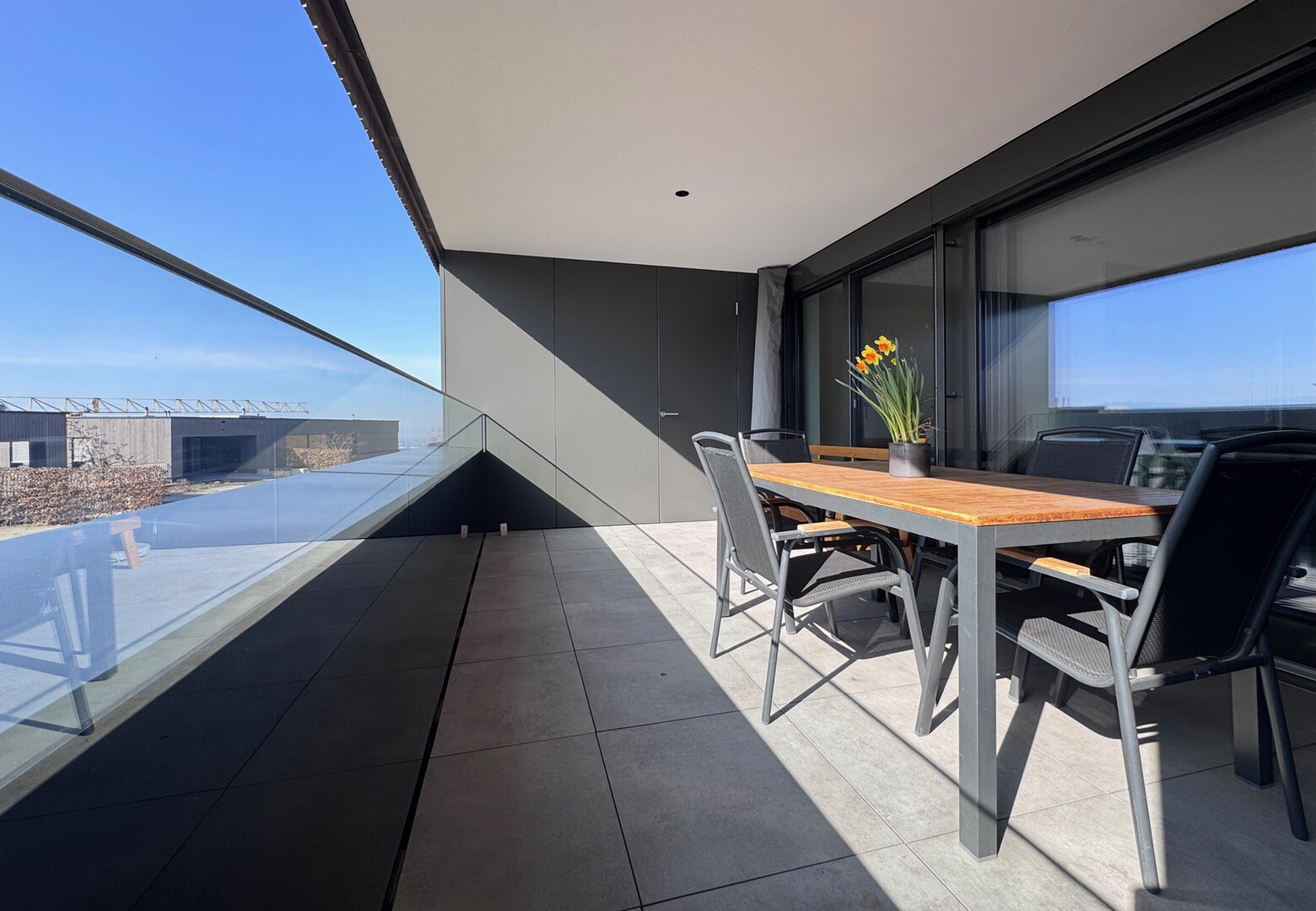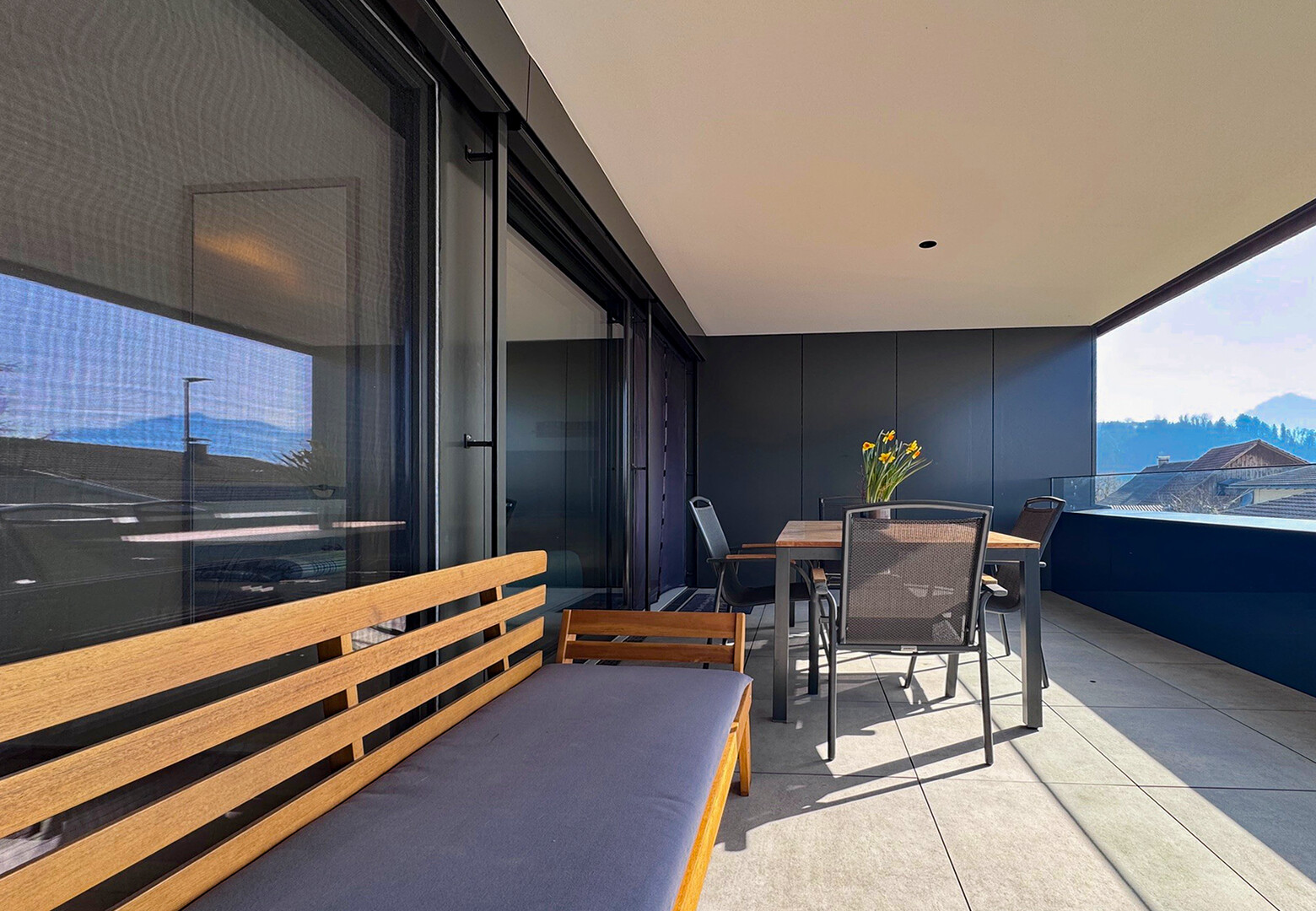 besonders helle Räume dank großer Fensterflächen und Schiebetür
