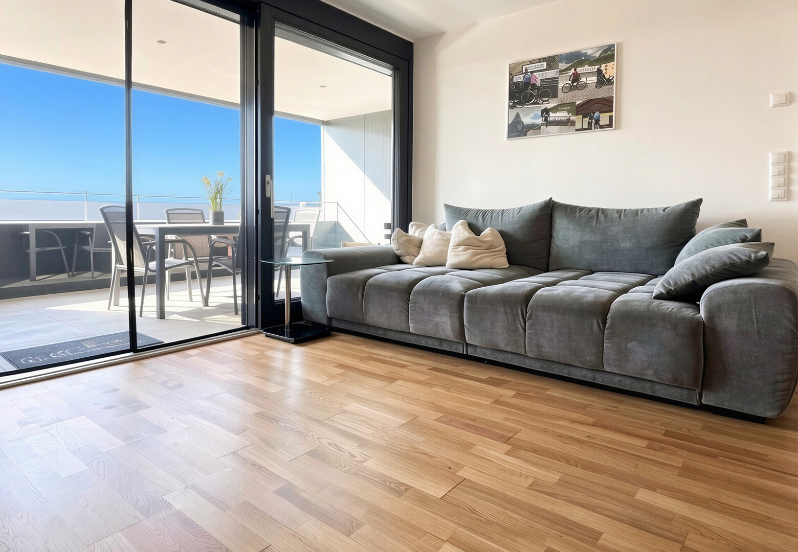 offener Wohn- und Essbereich mit direktem Zugang nach draußen