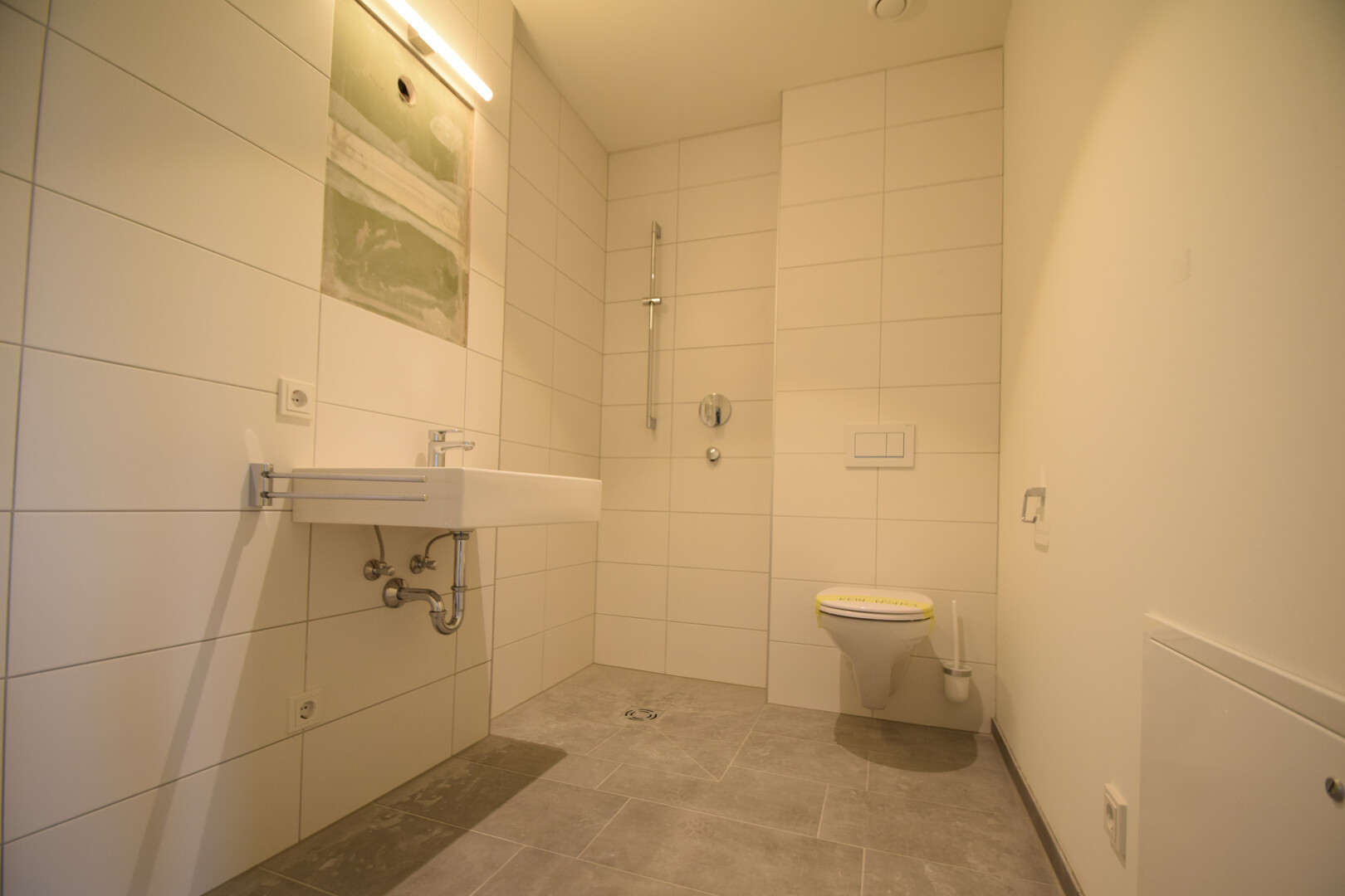 Die Wohnung besteht aus einem großzügigen Wohn-Ess-Schlafbereich mit Küche, einem Badezimmer mit Dusche sowie einem WC. Besonders beeindruckend sind die hohen Decken, die der Wohnung eine helle und offene Atmosphäre verleihen. Zusätzlich verfügt die Wohnung über eine Fußbodenheizung mit Kühlfunktion und in der gesamten Wohnung gibt es eine Lüftungsanlage, die für ein angenehmes Raumklima sorgt.