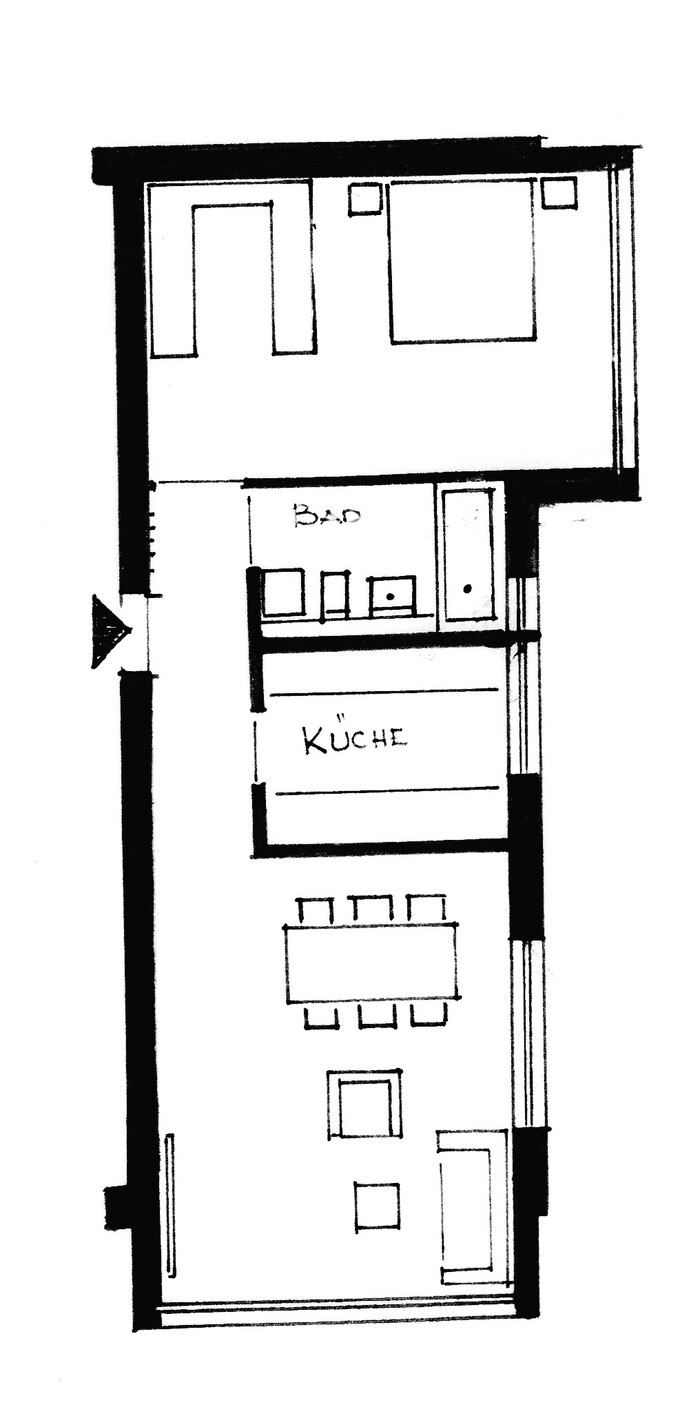 Das Bad und die separate Küche werden jeweils über ein Fenster natürlich belichtet.