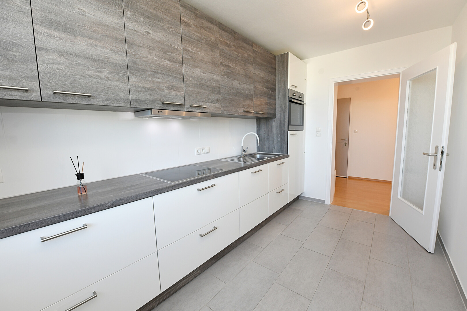 Besonders hervorzuheben ist die großzügige Küche, die viel Platz zum Kochen und Verweilen bietet und zum Mittelpunkt des Wohnens wird. Die zwei gut geschnittenen Zimmer lassen sich flexibel als Wohn- und Schlafzimmer oder auch mit einem Homeoffice kombinieren und bieten eine angenehme Raumaufteilung mit vielfältigen Gestaltungsmöglichkeiten.