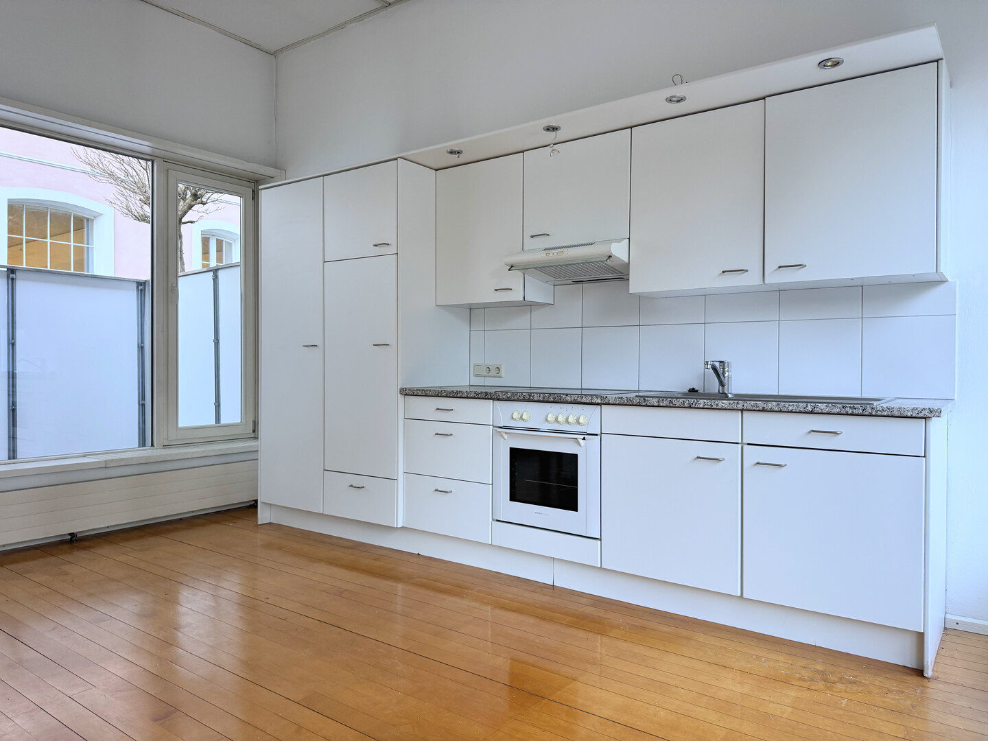 Das Top gliedert sich in einen Eingangsteil, von dem aus man in den Koch-Essbereich und den Wohnbereich gelangt. Die Küche ist in weiß gehalten. Die großzügigen Fensterfronten zeigen direkt zur Ill und sind mit elektrischen Außenjalousien versehen.