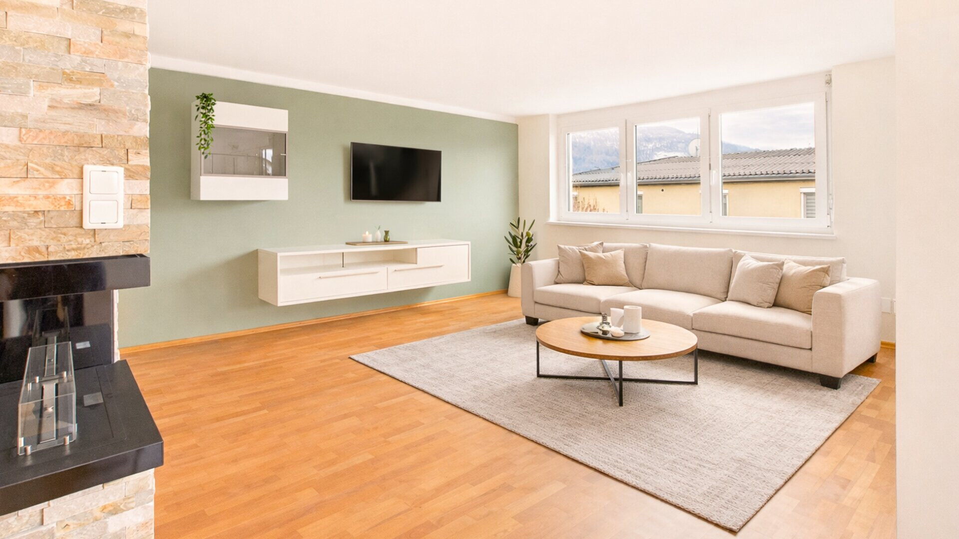 Die rund 103 m² große Wohnung befindet sich im 1. Obergeschoss einer Wohnanlage mit insgesamt acht Einheiten und überzeugt durch eine durchdachte Raumaufteilung sowie einem angenehmen Wohnambiente.