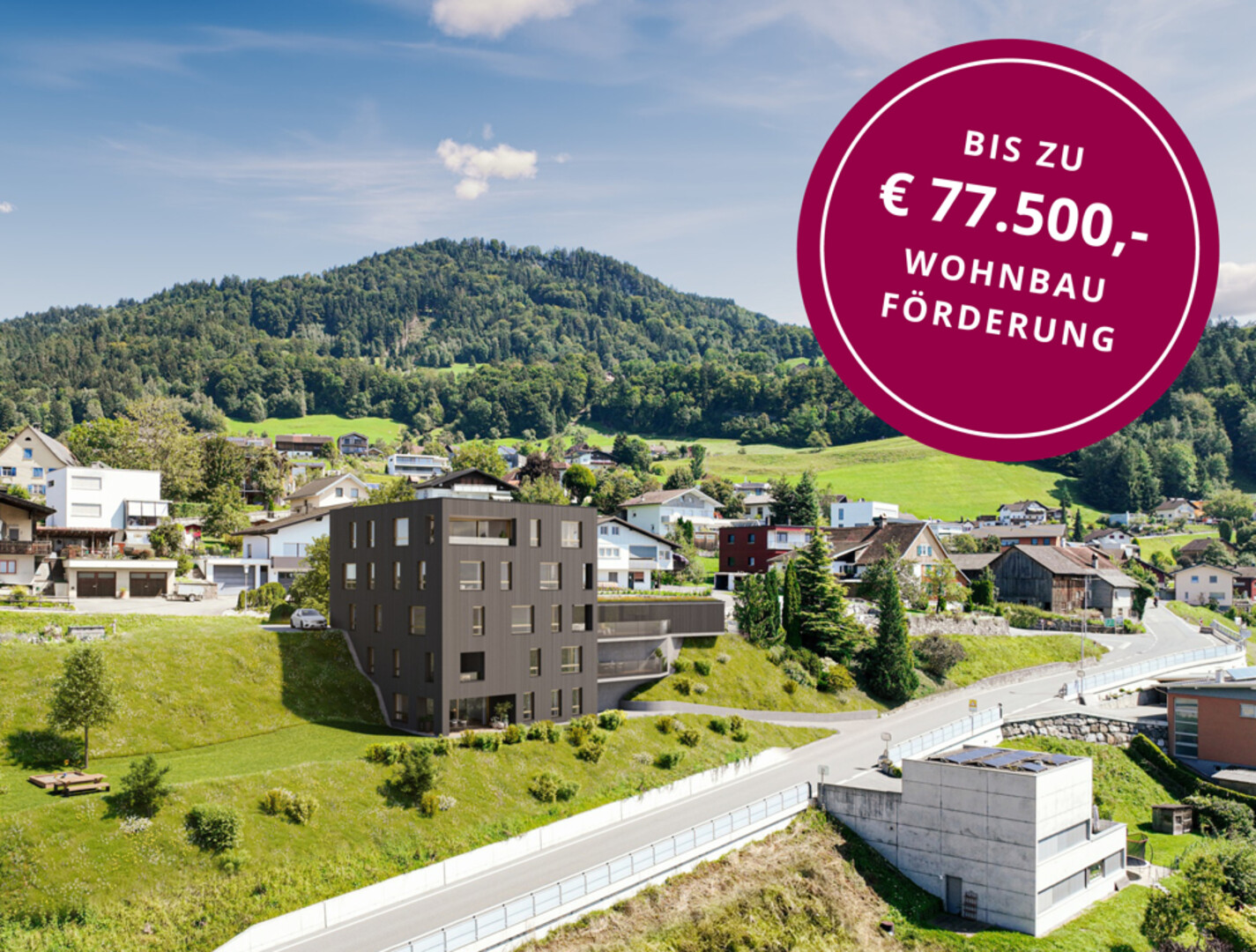 Traumhafte Loggia mit Panoramablick auf das Rheintal und die Schweizer Berge. Ideal für Singles und Paare wird diese 2-Zimmer Wohnung angeboten. Die Architektur zeichnet sich durch moderne Holzfassaden, hochwertige Holz-Alufenster, Eichendielenböden und elegante Sanitäranlagen aus. Parkplätze auf Straßenniveau mit direktem Zugang zum Lift gewährleisten eine komfortable Erreichbarkeit aller Ebenen. Die Anlage wird mit modernen, nachhaltigen Technologien wie Photovoltaik, einem fortschrittlichen Heizsystem und der Vorbereitung für E-Ladestationen ausgestattet. Weitere Annehmlichkeiten umfassen Besucherparkplätze, Fahrradstellplätze und einen Kleinkinderspielplatz. Ideal für alle, die hohen Wohnkomfort in einer lebenswerten Umgebung suchen.