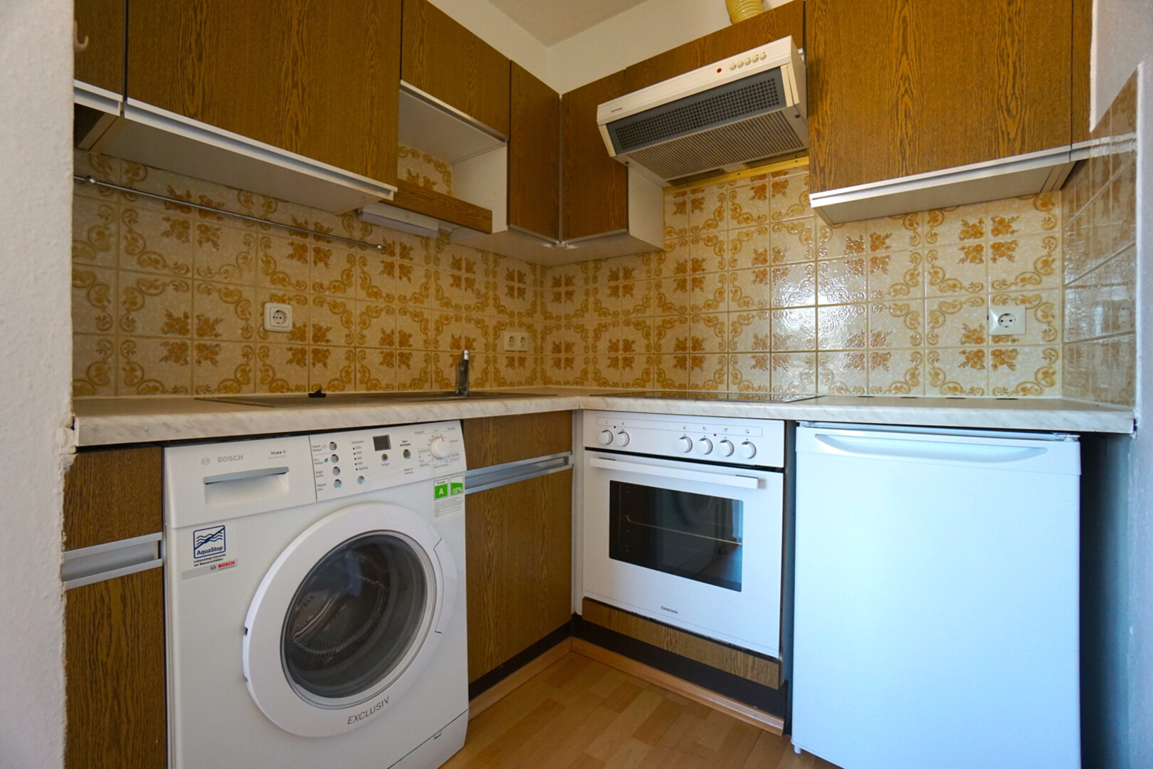 Im Wohn/Essbereich finden Sie eine kleine Einbauküche vor, die keine Wünsche mehr offen lässt. Hier befindet sich auch eine Waschmaschine, die gerne verwendet werden darf. In der kompletten Wohnung wurde ein Laminatboden verlegt, welcher für eine angenehme Wohnatmosphäre sorgt. Im Badezimmer finden Sie Fließen vor.