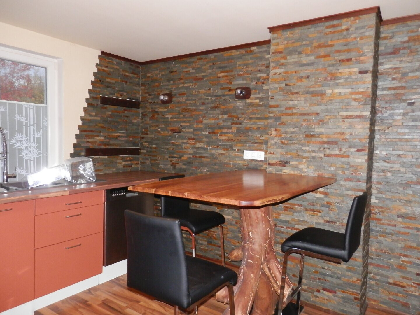 Für das optische Flair wurden italienischer Schieferstein sowie gebeizte Zierleisten