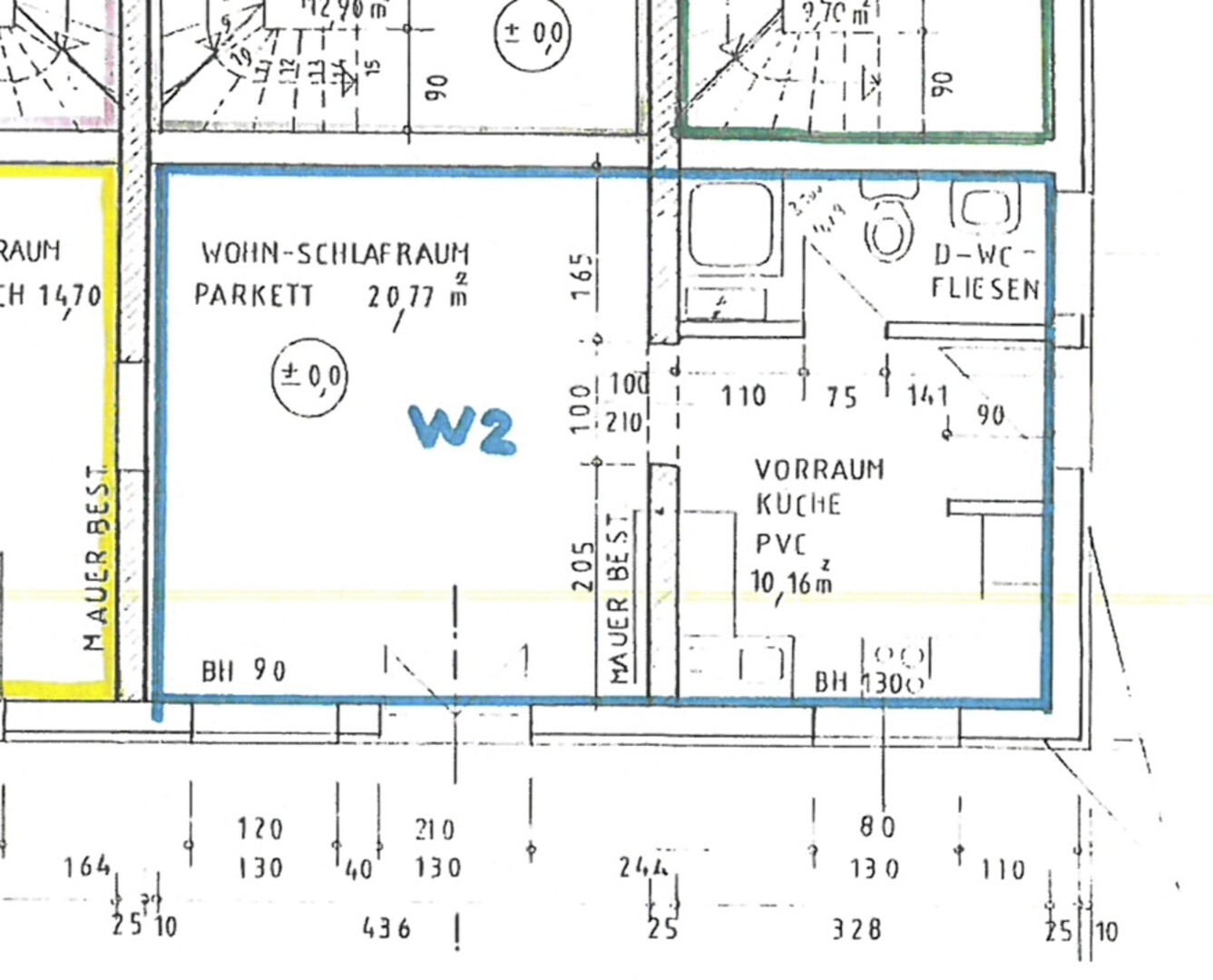 Vom Vorraum gelangen Sie gleich in die Küche, hier haben Sie genügend Platz für einen Esstisch. Das Badezimmer ist mit einer Dusche und einem Waschmaschinenanschluss sowie einem WC ausgestattet. Über das Fenster besteht eine Belüftungsmöglichkeit ins Freie. Das Wohn-Schlafzimmer verfügt über eine Fläche von 20 m².