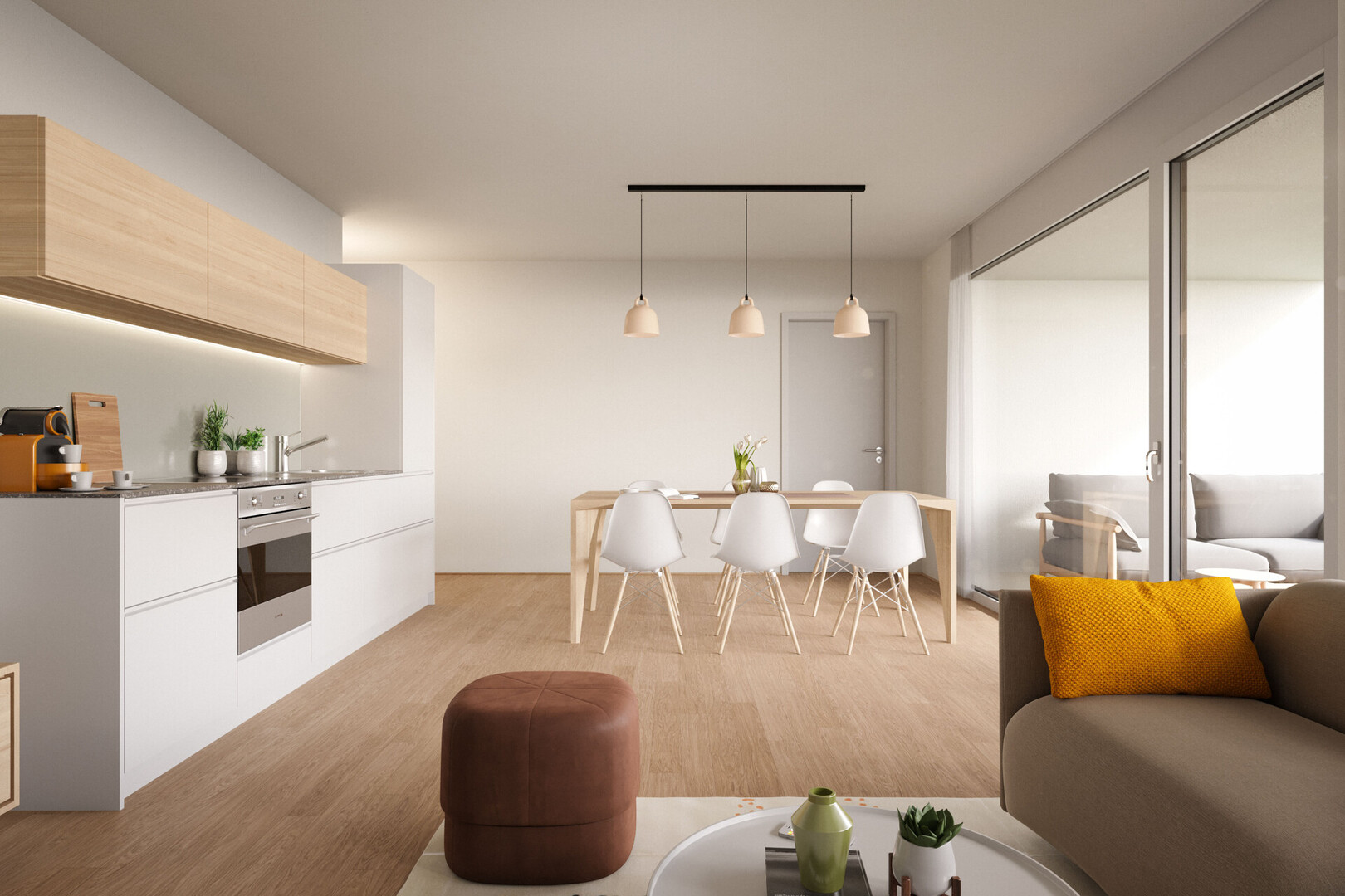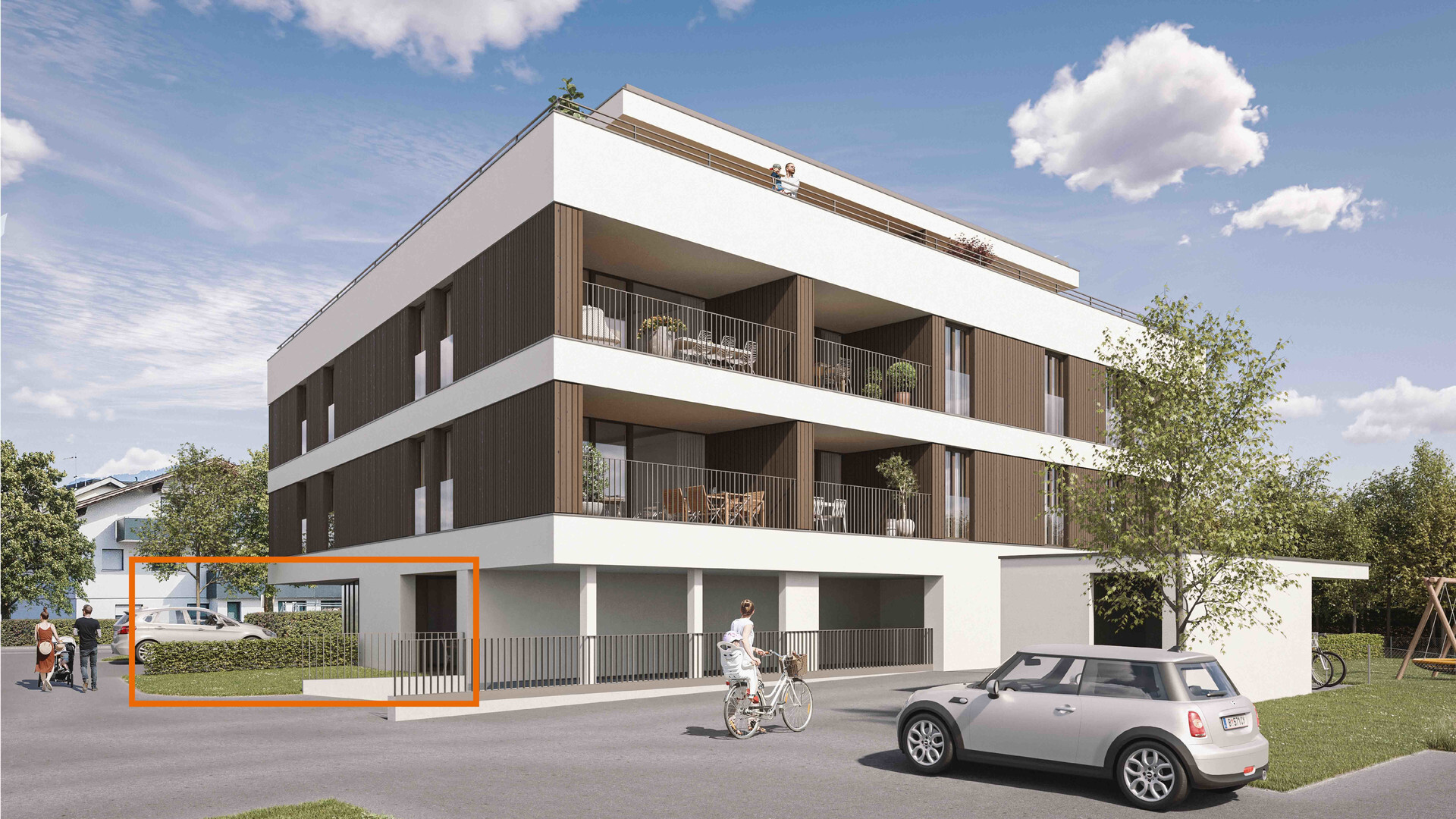 Das Gebäude besticht durch klare, elegante Architektur mit vertikal angeordnetem Verputz, Holz und raumhohen Fenstern. Die Wohnanlage mit 14 Einheiten fügt sich harmonisch in die Umgebung ein und ist über ein zentrales, barrierefreies Treppenhaus mit Lift erreichbar. Im Erdgeschoss befinden sich drei Wohnungen und ein Büro, jeweils mit Gartenanteil. Die Obergeschosse bieten Loggien oder Terrassen. Alle Wohnbereiche sind mit Eichenparkett ausgestattet und verfügen über elektrische Jalousien oder Senkrechtmarkisen. Fußbodenheizung sorgt für angenehme Wärme. Im Untergeschoss gibt es Kellerabteile, einen Fahrradraum und eine Tiefgarage mit 13 Stellplätzen für Elektromobilität. Das Heizsystem kombiniert eine Wärmepumpe mit Erdsonde und eine Photovoltaikanlage. Hochwertige Wärmedämmung und 3-fach verglaste Holzfenster gewährleisten Energieeffizienz.