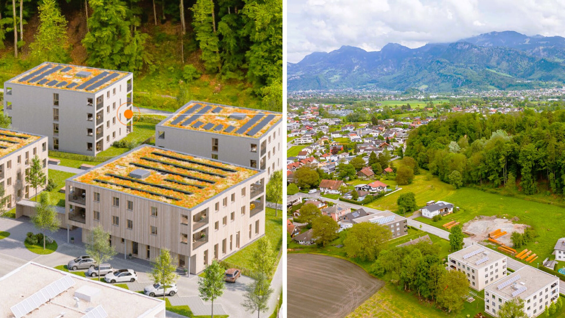 Koblach liegt im Rheintal, nahe der Schweiz und bietet mit dem Wohnquartier „Koblach Kutzen“ vielseitigen Lebensraum für Familien, Berufstätige und Ruheständler. Das Haus D von Wilhelm+Mayer kombiniert modernes und naturnahes Wohnen mit hochporosierenden Ziegelwänden ohne Styropor-Dämmung, einem begrünten Flachdach und einer nachhaltigen Heiztechnik aus Grundwasser-Wärmepumpe und Photovoltaik-Anlage. Die Anlage umfasst ein Erdgeschoss und drei Obergeschosse mit insgesamt 15 Einheiten, darunter drei Gartenwohnungen und pro Etage vier weitere Einheiten. Es gibt drei Wohnungstypen (45 m², 61 m², 78 m²). Obergeschosswohnungen haben eine Loggia, Gartenwohnungen eine Terrasse. Im Untergeschoss befinden sich Kellerabteile, ein Fahrradraum und eine Tiefgarage.