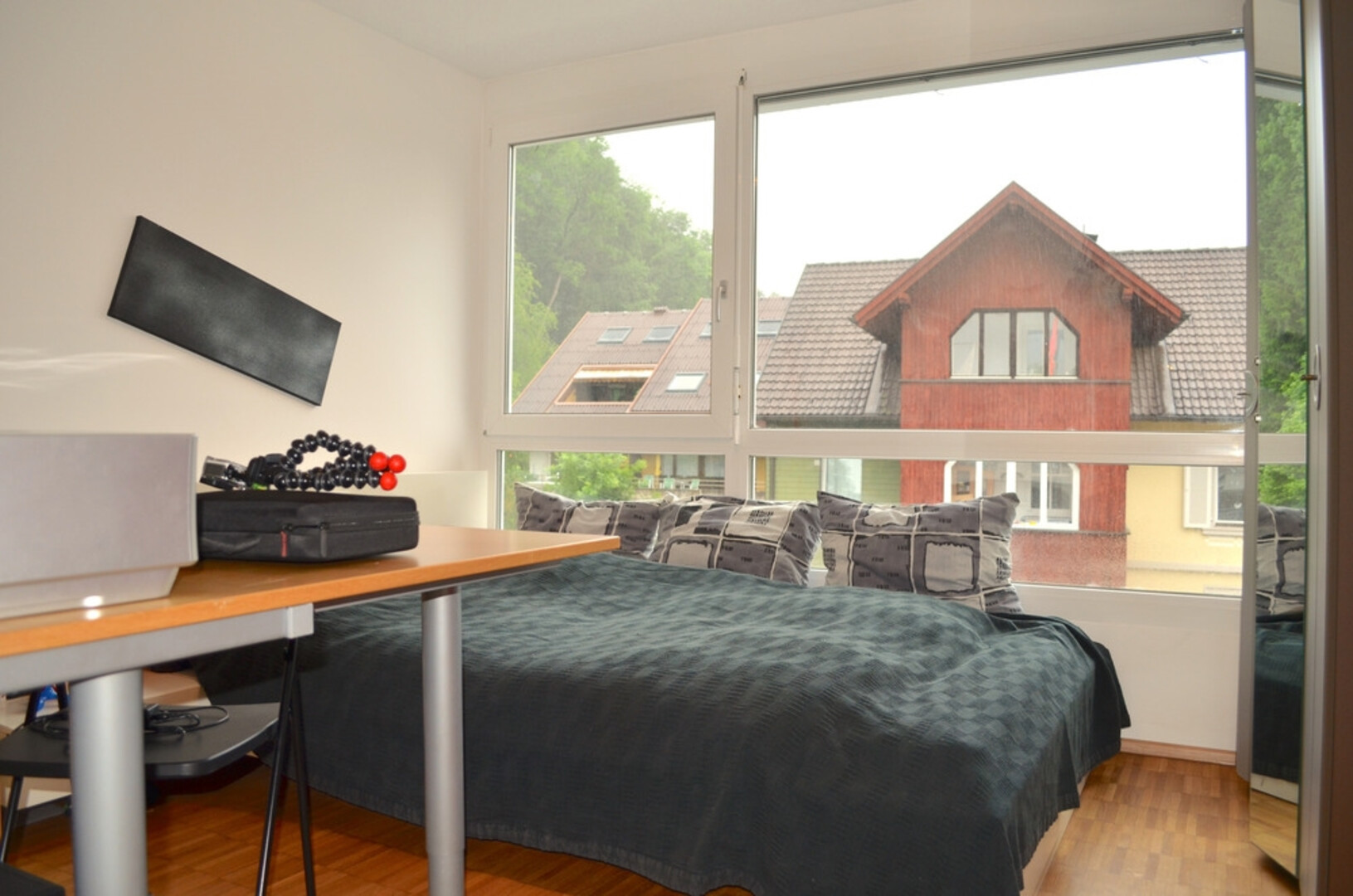 Die Wohnung punktet mit einer idealen Raumaufteilung. Große Fensterfronten im Schlaf- und Wohnzimmer sorgen für ein helles und angenehmes Raumgefühl.