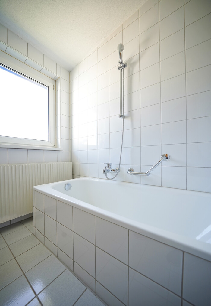 Bad mit: Fenster, Badewanne