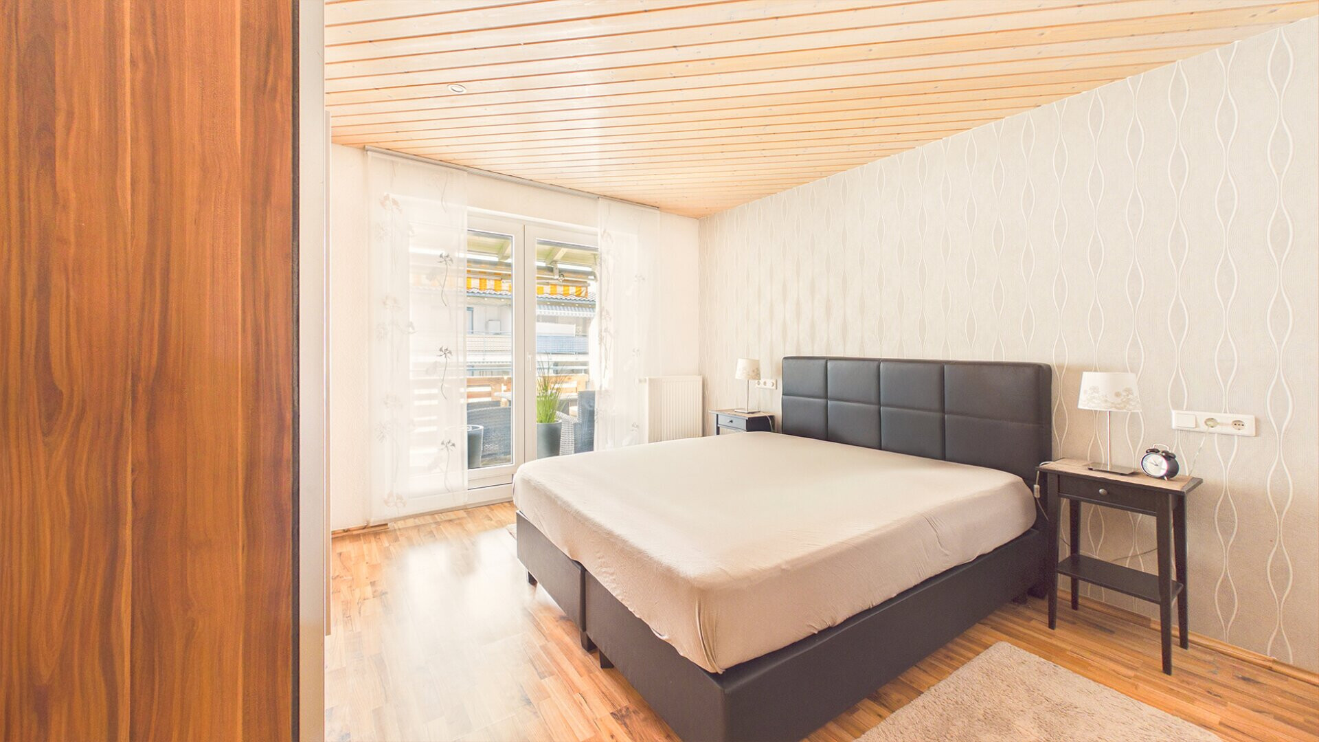 Die rund 82 m² große 3-Zimmer-Wohnung überzeugt durch eine klare und funktionale Raumaufteilung. Sie verfügt über ein Schlafzimmer mit direktem Zugang zur Loggia, ein weiteres Zimmer, das derzeit als Gästezimmer genutzt wird und sich flexibel auch als Büro oder Kinderzimmer anbietet, sowie einen offenen Wohn-und Essbereich mit integrierter Küche. Von hier aus gelangt man ebenfalls direkt auf die Loggia, wodurch Innen und Außenbereich harmonisch miteinander verbunden werden.
