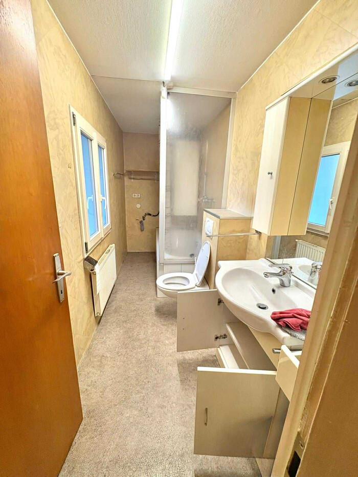 - Badezimmer mit Fenster, Dusche und WC