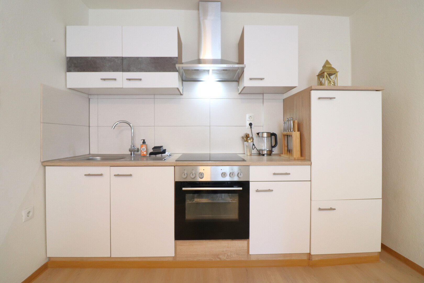 - Voll ausgestattete Einbauküche mit praktischem Sitzbereich