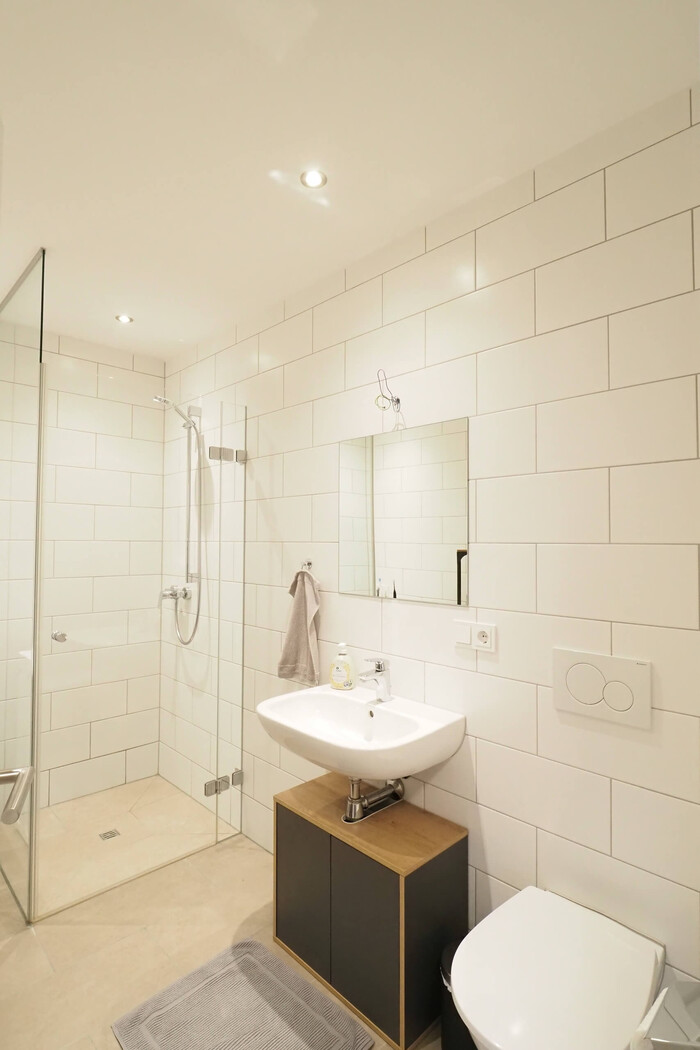 Bei den Mietwohnungen, mit ihren großzügigen Raumhöhen wurde Wert auf Qualität und Design gelegt. Sie sind hochwertig ausgestattet mit Eichenparkettböden, attraktiven Fliesen, schönem Badezimmer und Einbauküche. Für ein gutes Raumklima sorgt die automatische Be- und Entlüftung.
