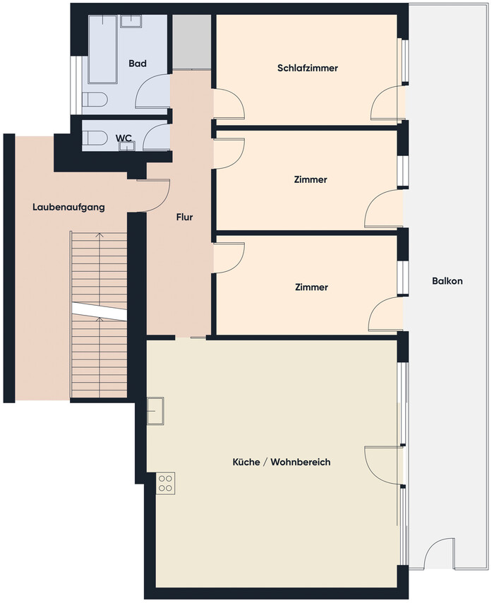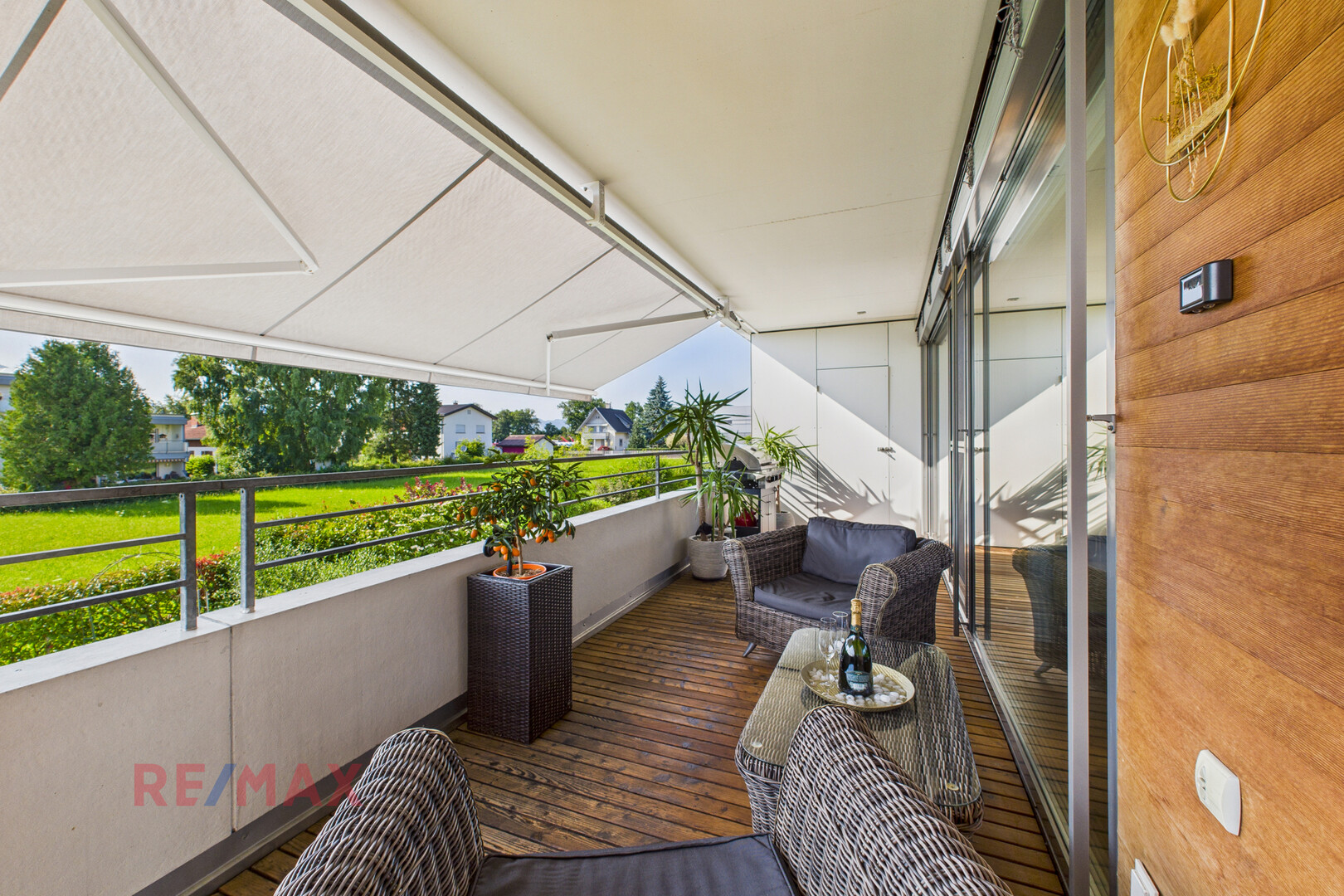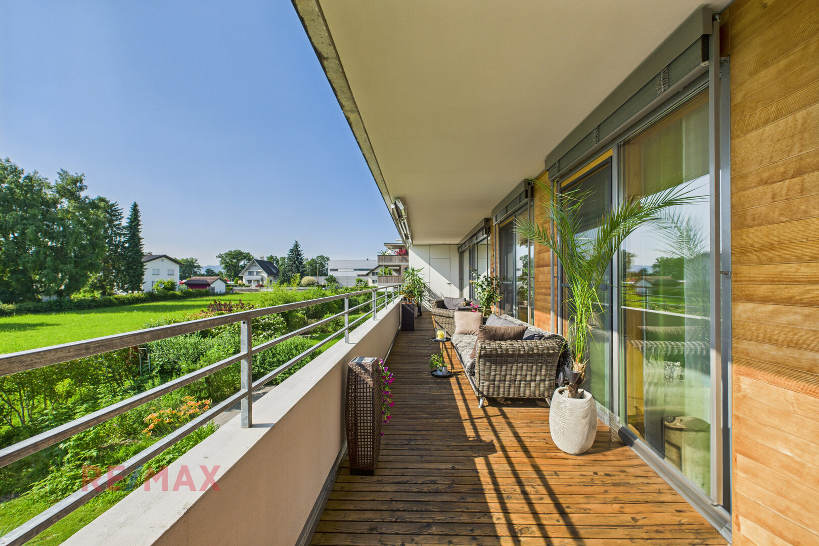 Ein echtes Highlight ist der großzügige Balkon mit ca. 30 m² – eine sonnige Oase für entspannte Stunden im Freien, ob beim Frühstück im Morgenlicht oder beim Abendessen unter freiem Himmel.