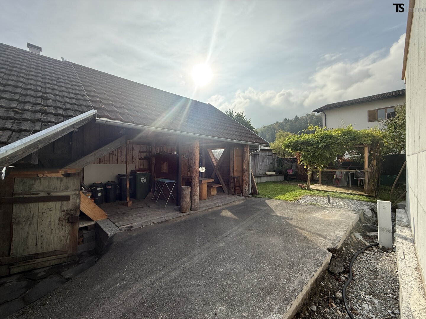Teilnutzung des Gartens - Zugang zum Sitzplatz über Hof (kein direkter Zugang von der Wohnung): Ein Sitzplatz bzw. ein Bereich im Garten steht zur Mitbenutzung zur Verfügung.