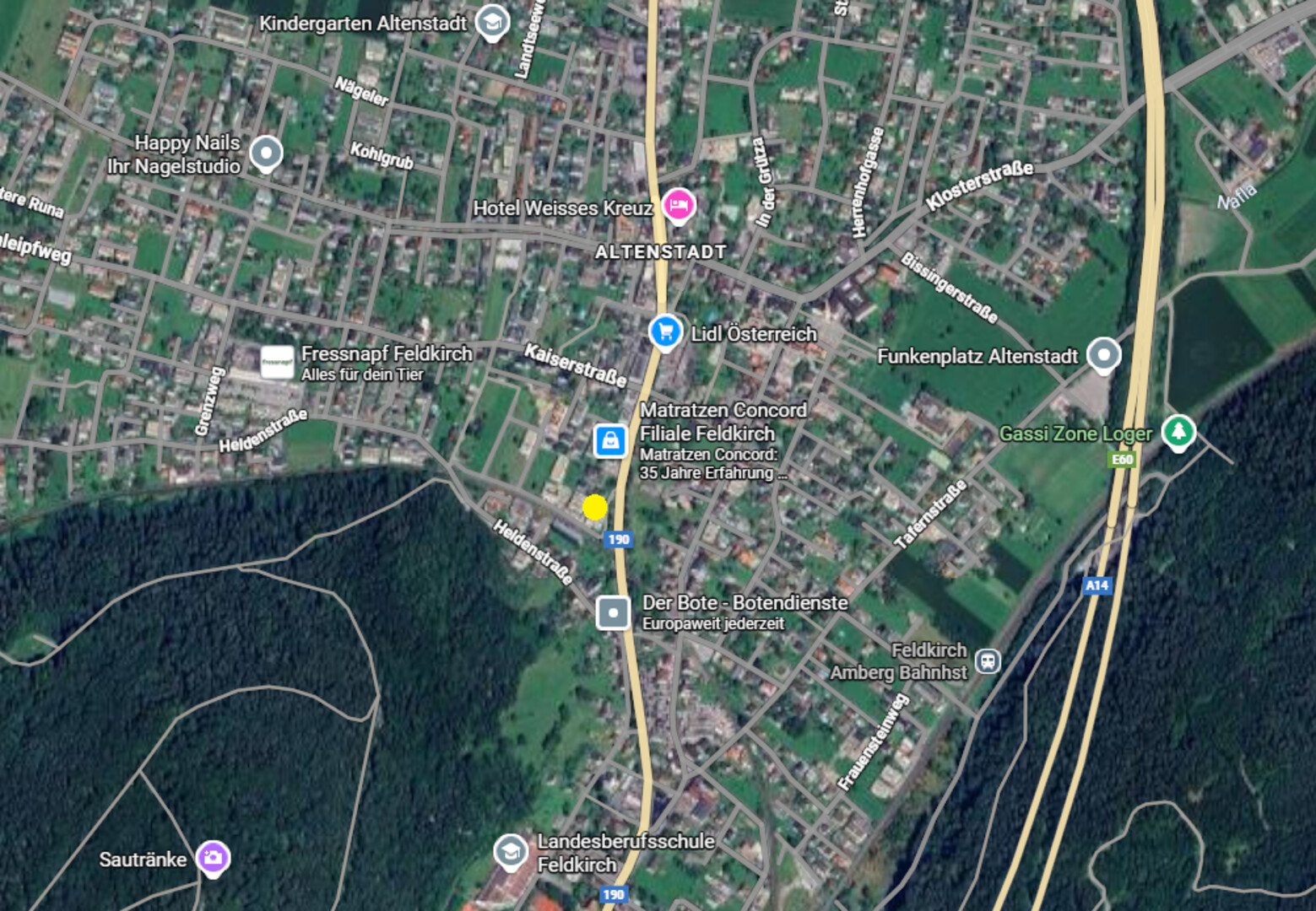 Diese Immobilie befindet sich in einer attraktiven Lage in Feldkirch, die sowohl Ruhe als auch hervorragende Verkehrsanbindungen bietet. Nur einen kurzen Fußweg von 6 Minuten entfernt finden Sie die nächste Haltestelle des öffentlichen Personennahverkehrs, was Ihnen eine bequeme und schnelle Fortbewegung innerhalb der Stadt ermöglicht.