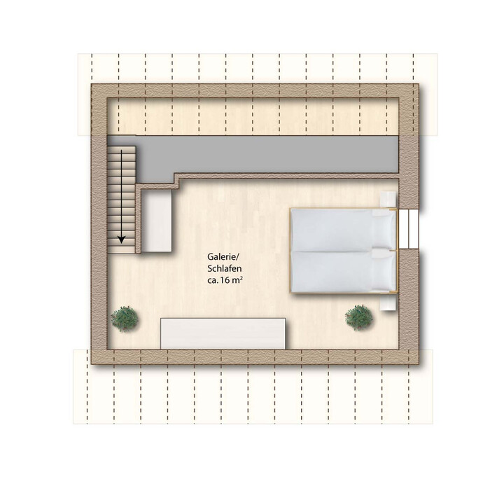 Über den Eingangsbereich gelangen Sie in den lichtdurchfluteten Wohnraum, in dem sich eine gut ausgestattete Küche harmonisch in einer eigenen Nische einfügt. Eine charmante Stiege führt zur Galerie, die sich ideal als Schlafzimmer eignet und ein besonderes Wohnambiente schafft.