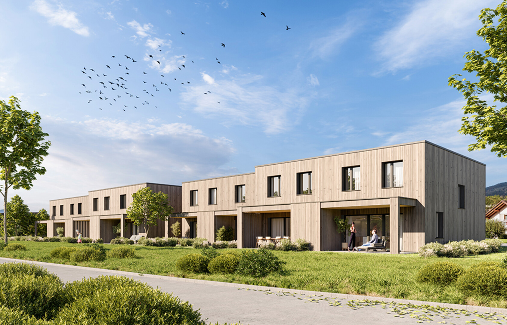 In ruhiger Lage in Schlins werden neun stilvolle Reihenhäuser verwirklicht, die dank durchdachter Planung auf ca. 100 m² Wohnfläche genügend Raum für individuelle Bedürfnisse bieten. Die Holzbauweise sorgt für ein einzigartiges Wohngefühl und ein ideales Raumklima.